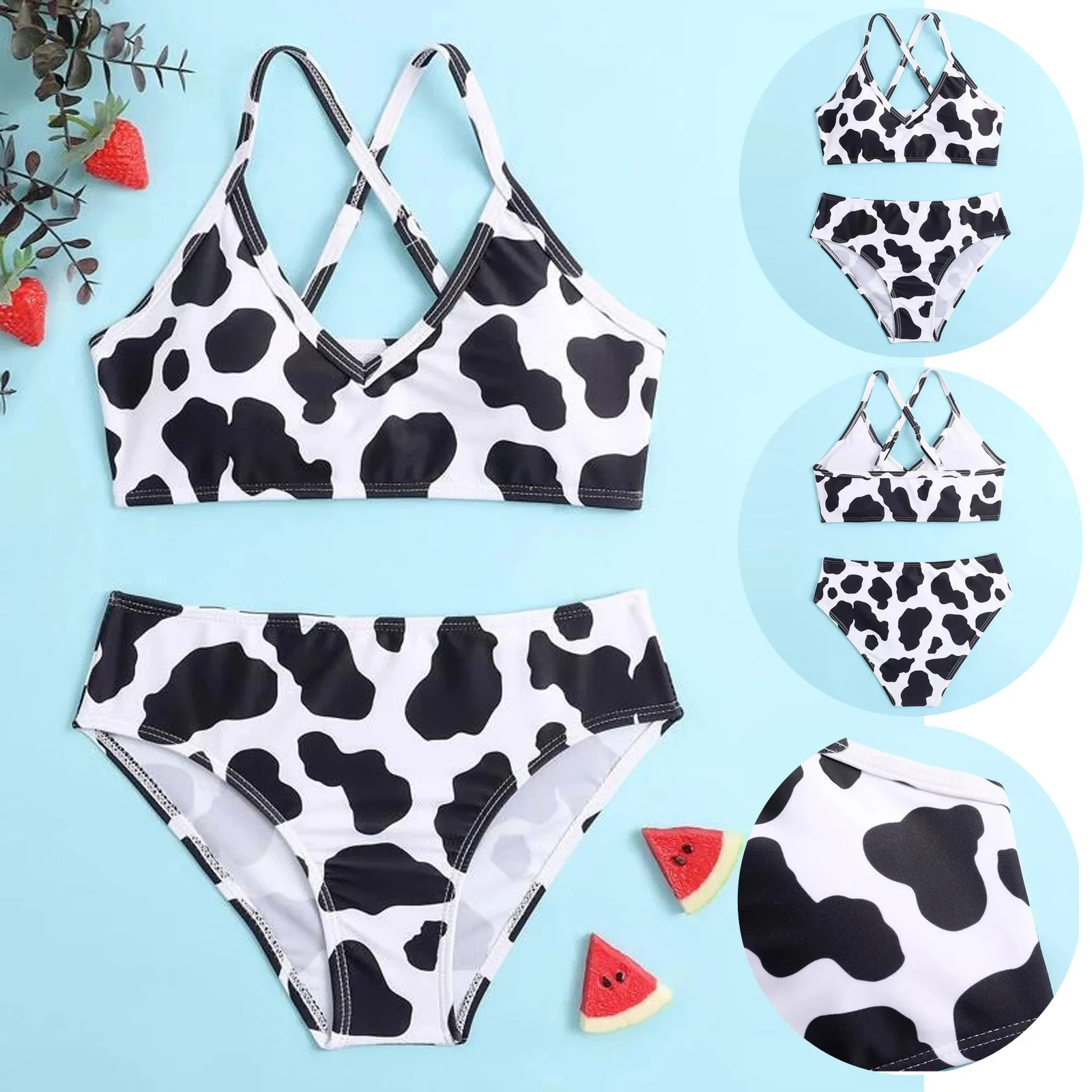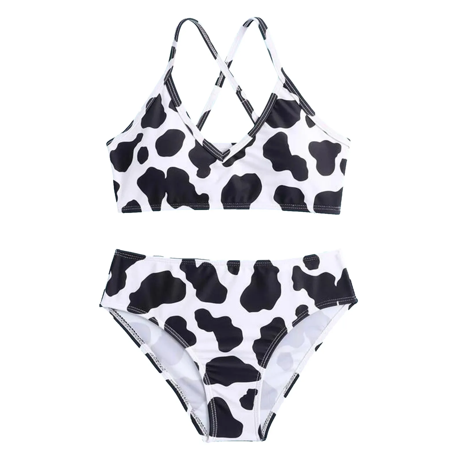 Новинка 2021, милый женский купальник с V-образным вырезом и коровьим принтом, детский купальник из двух предметов, летние комплекты бикини для бассейна