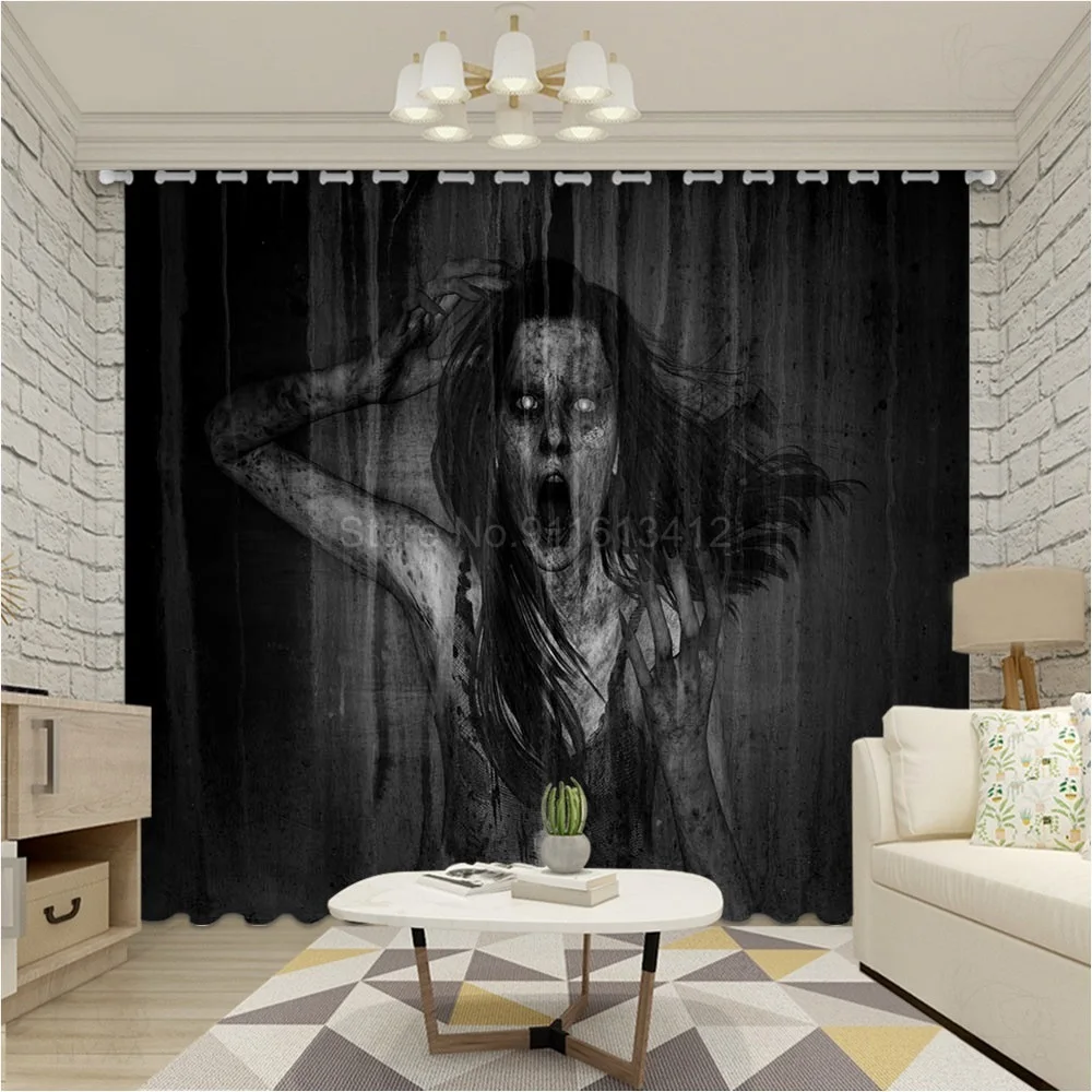 Затемняющие занавески на Хэллоуин, черная тыква, летучая мышь, призрак, дверь, настенное украшение на Хэллоуин, украшение для вечеринки, ультратонкое легкое затенение