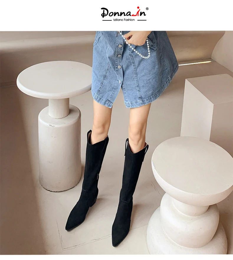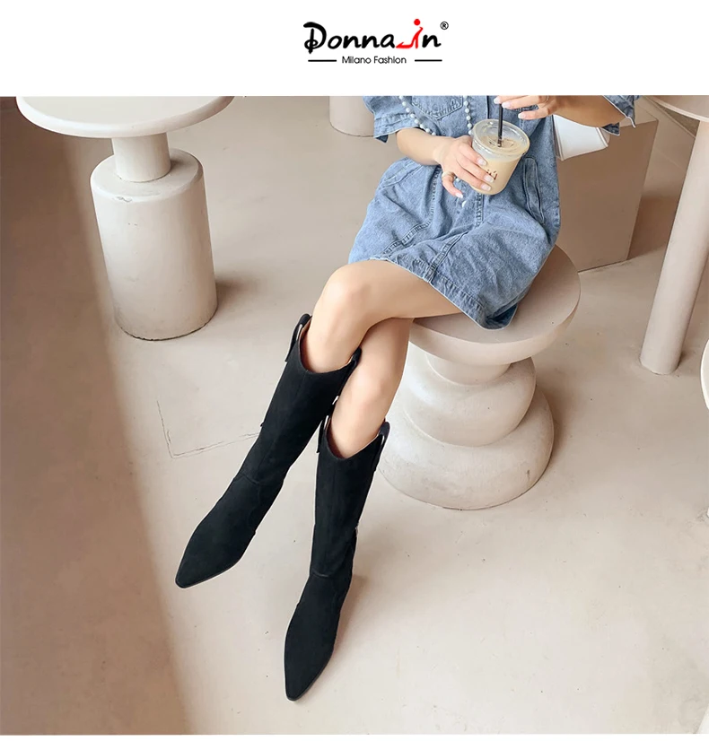 Женские сапоги-стрейч выше колена Donna-in, плиссированные высокие ...