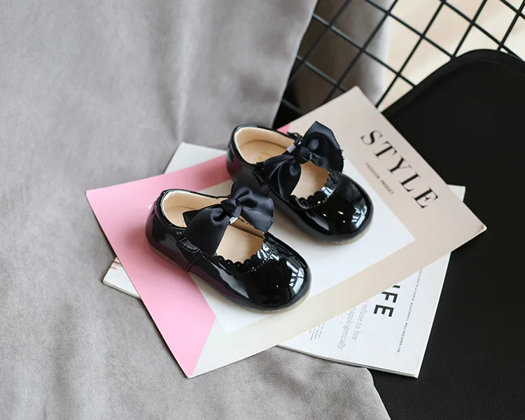 Туфли Детские демисезонные из лакированной кожи, с бантом, однотонные