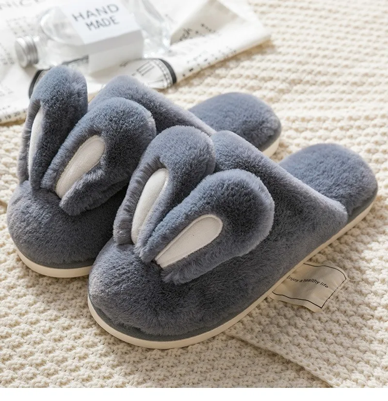 Модные женские тапочки зимняя теплая меховая обувь для мужчин и пар Симпатичные кроличьи уши мягкая подошва для дома дамские плюшевые сланцы Zapatillas