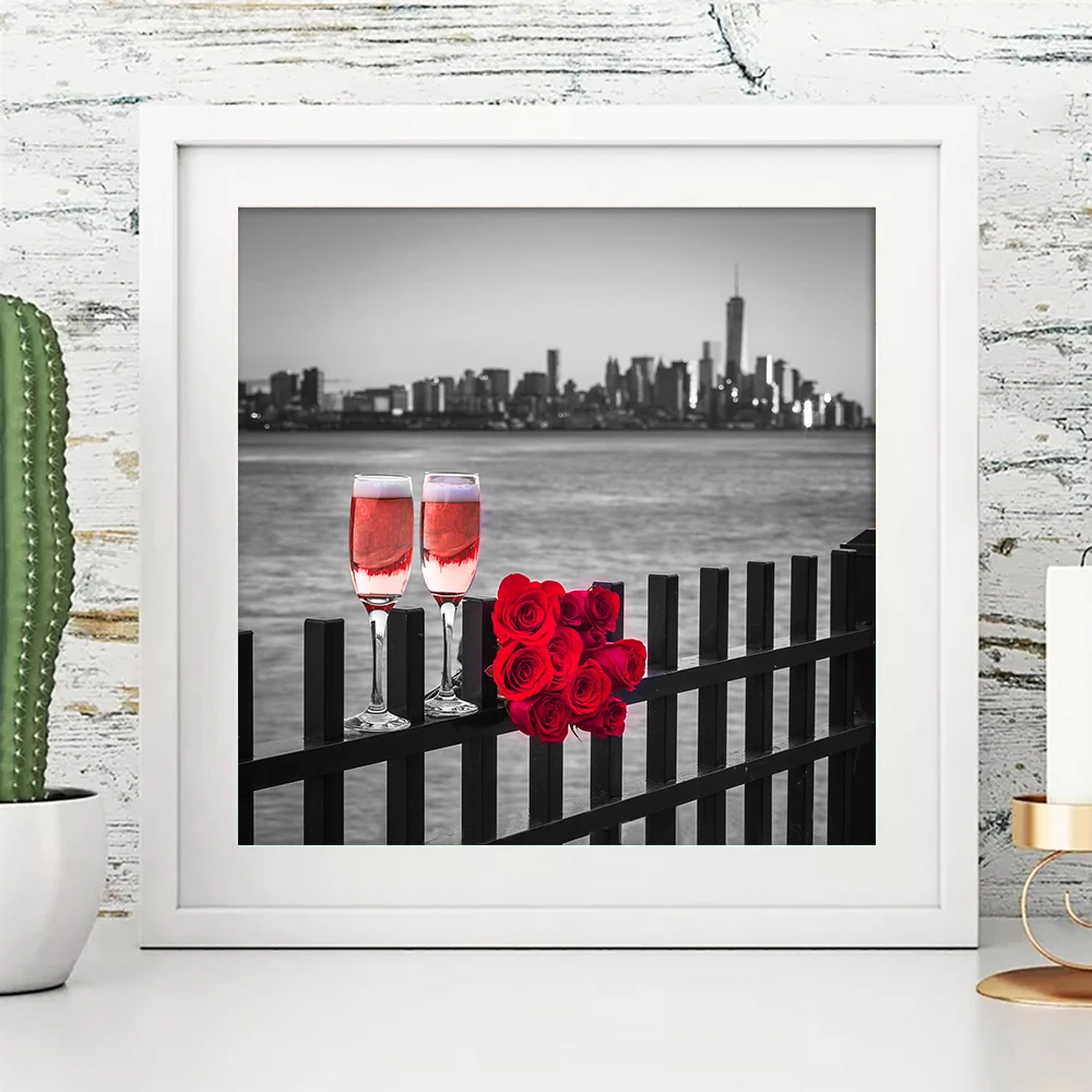 Алмазная живопись 5D "сделай сам", черно-белая, красная серия, квад...