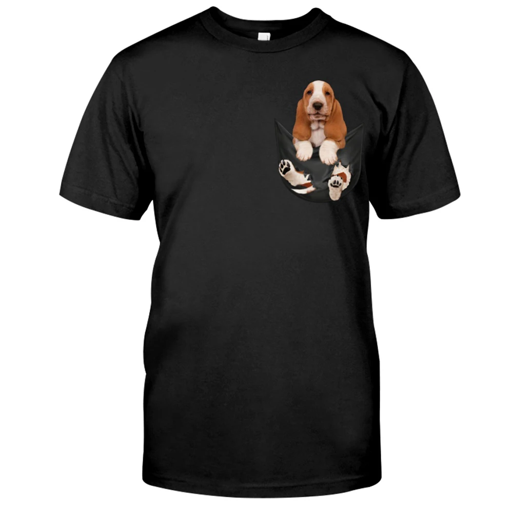 Хлопковая футболка CLOOCL, модные футболки с принтом Бассета в кармане, повседневные топы в стиле Харадзюку, забавные хлопковые черные футболки, Прямая поставка