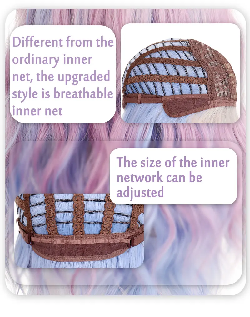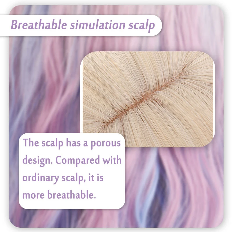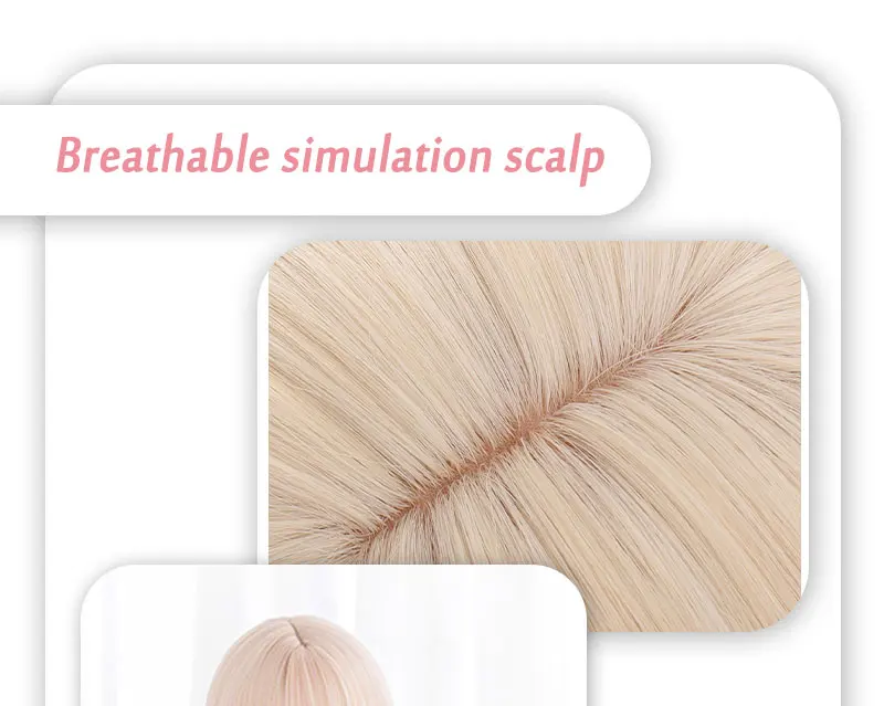 ★Имитация дышащей кожи головы (Кожа головы имеет пористый дизайн. По сравнению с обычной кожей головы, она более дышащая. Имитация дизайна кожи головы. Сделайте парик более естественным.) ★Высококачественный термостойкий матовый шелк ● Дышащая Внутренняя сетка ●Длина 58 см
