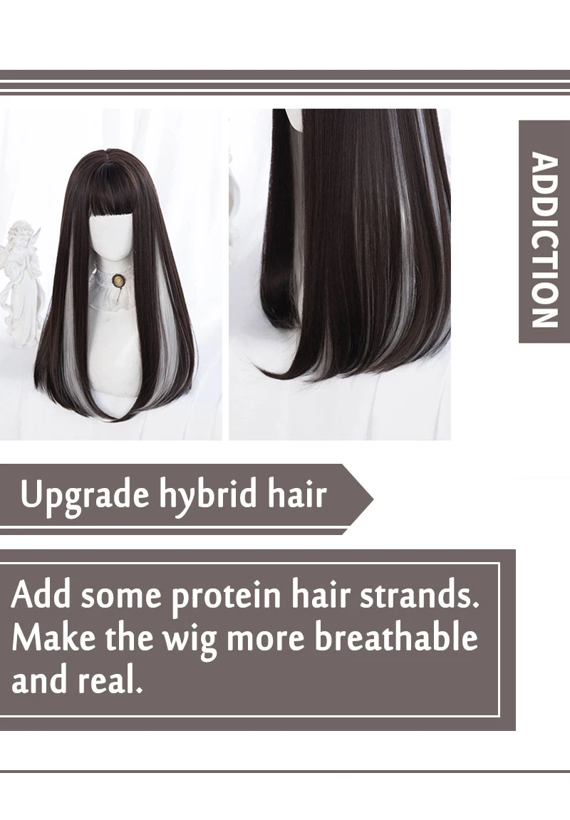 ▲ Улучшенные гибридные волосы ★Добавьте немного белковых прядей волос. Сделайте парик более воздухопроницаемым и настоящим. ●Имитация кожи головы ● Дышащая Внутренняя сетка ●Длина: 55 см