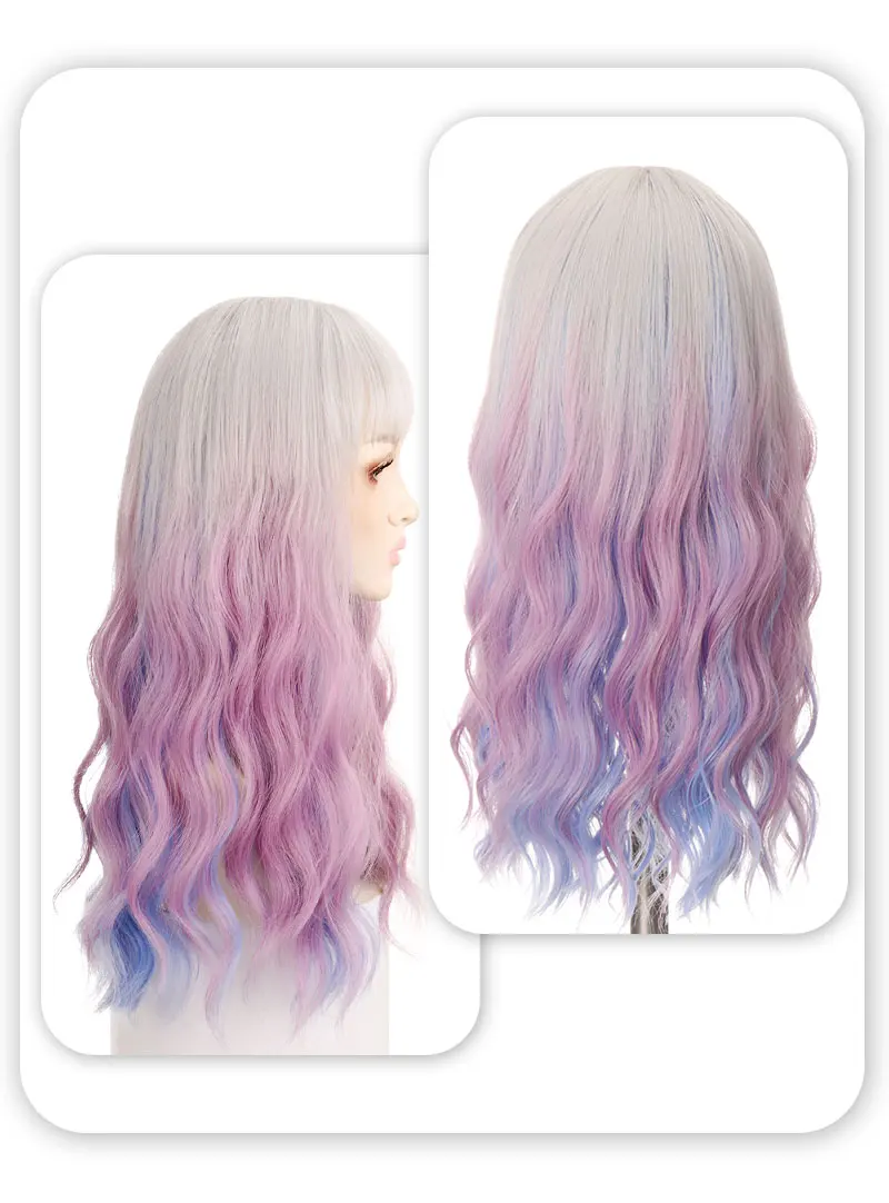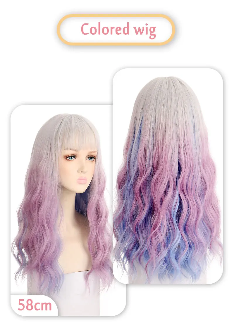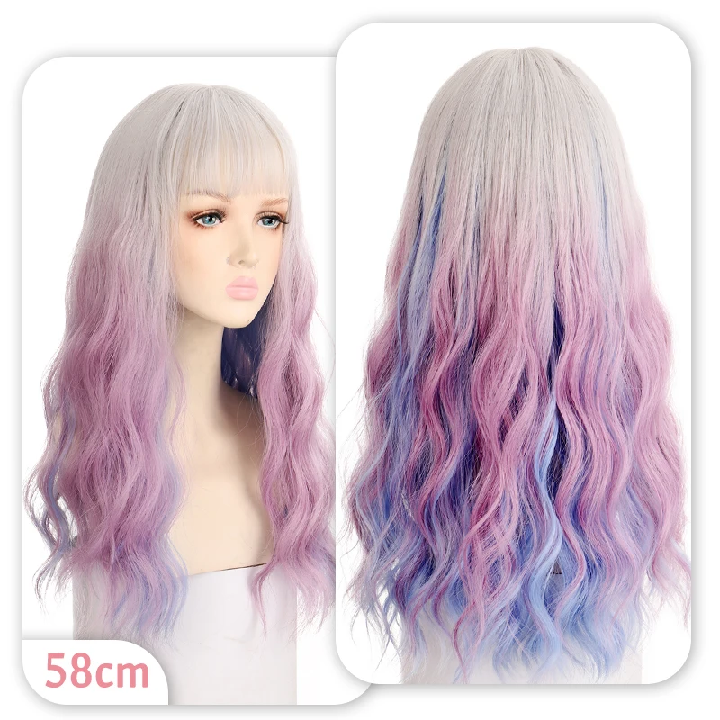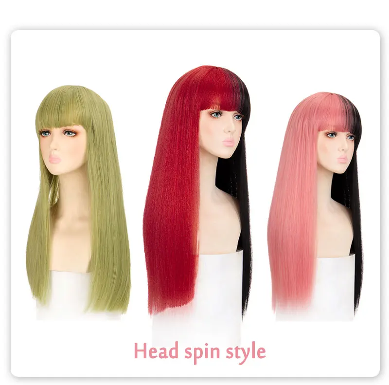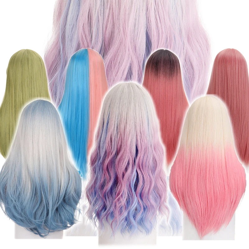 Allaosify синтетический длинный прямой парик для косплея Лолиты с челкой Розовый Фиолетовый Синий Оранжевый Красный Черный Зеленый аниме парики для женщин