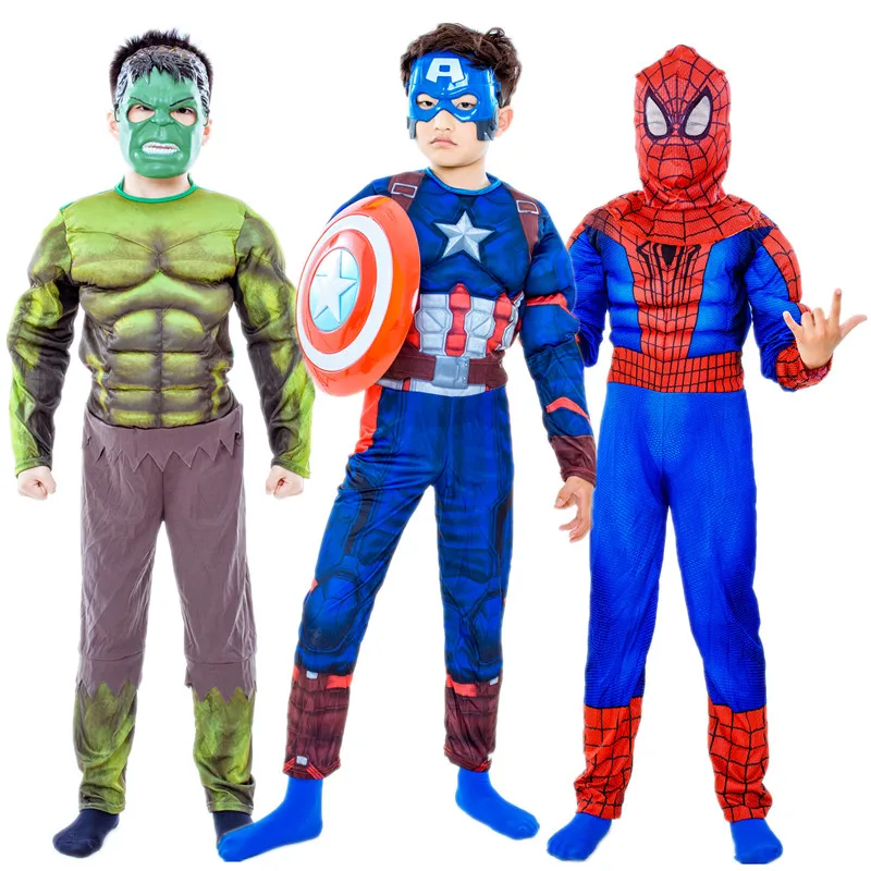 костюм железного человека безумный азарт косплей хэллоуин одежда Детский костюм Халкачеловека-паукасупергероя Капитана Америки, перчатки для мальчиковмаска, сказочный фильм