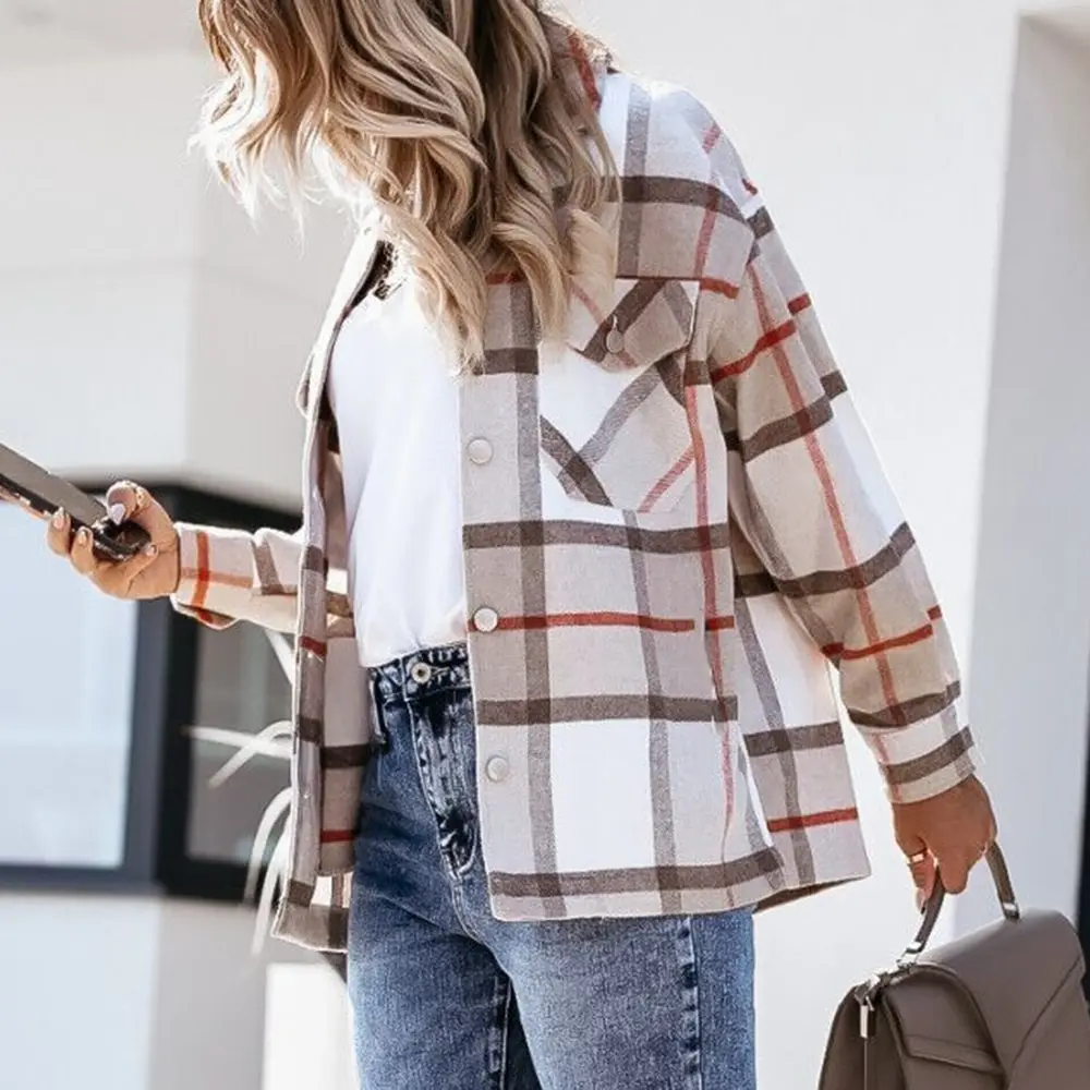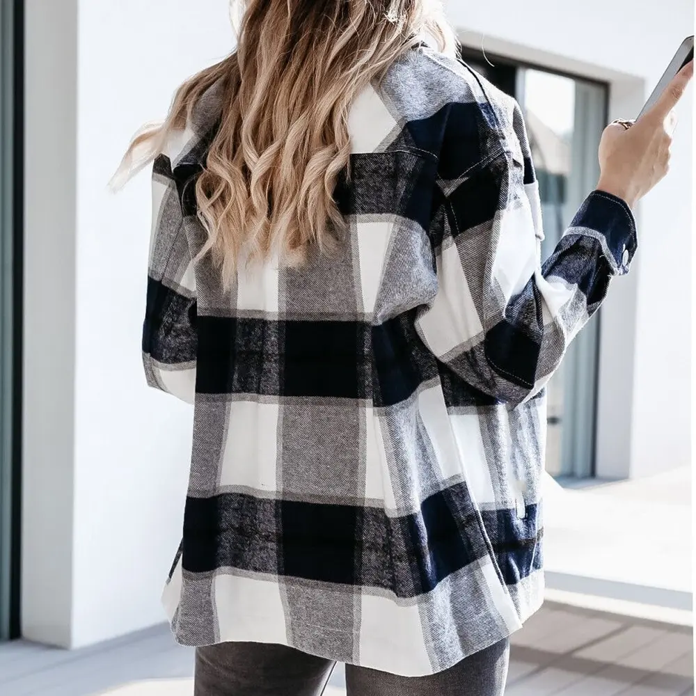 Куртка женская клетчатая оверсайз с отложным воротником, модный пиджак свободного покроя, уличная одежда, на осень