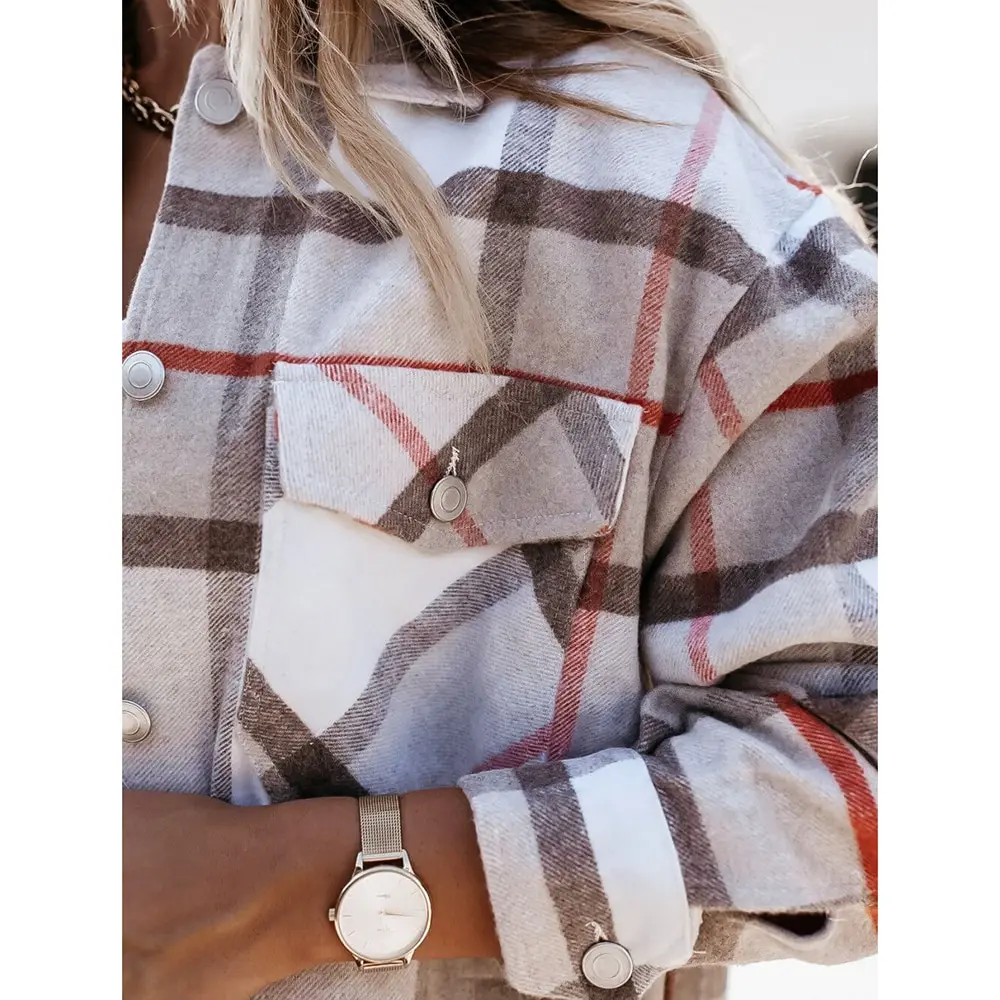 Женская винтажная клетчатая куртка оверсайз с карманами и воротнико...