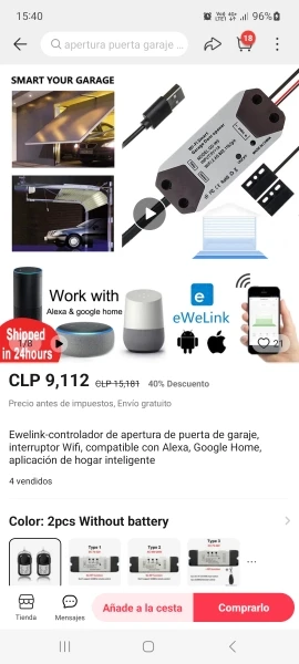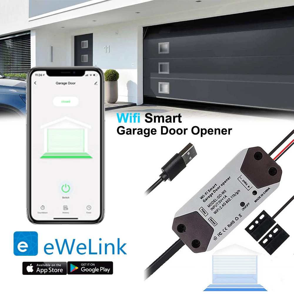 WiFi смарт гаражные двери управления Лер и гараж открыть закрыть монитор совместим с Alexa Echo , Google Home Голосовое управление не требуется концентраторУдаленный мониторинг: вы можете открыть или закрыть дверь с помощью приложения. Вы можете проверить открытую или закрытую дверь гаража в режиме реального времени. Вы можете уполномочить несколько человек получить доступ к вашему гаражу.Простота в использовании: мгновенно Управляйте дверью гаража, нажав приложение EweLink на вашем смартфоне. Просто подключите смарт-нож к сети Wi-Fi 2,4G.Голосовое управление: вы можете активировать открывалку гаражной двери, установив голосовую команду на ваше устройство Alexa или Google Assistant или управляя рядом с дверью гаражаШирокая совместимость: вы можете использовать только один контроллер для открывания гаражных ворот. Совместимость с большинством общих открывателей гаражных дверей. Пожалуйста, проверьте наш список.Функция таймера: вы можете установить расписание, чтобы открыть и закрыть дверь гаража. Быстрая и простая установка, а также без необходимости профессионала. Нет скрытого ПнФункция обратного отсчета: вы можете установить время обратного отсчета, чтобы закрыть или открыть дверь гаража.Легко добавить устройство:1. Дверь гаража будет активирована, когда она будет успешно добавлена (когда синий светодиодный светильник прекратит мигать), поэтому сначала закройте дверь.Включите гараж, а светильник ren и синий светильник тоже мигают.2. Запуск приложения "EweLink". Нажмите на значок '+' в правом верхнем углу.3. Выберите «все устройства», затем выберите тип «Wi-Fi коннектор».4. Нажмите "подтвердить индикатор быстро мигает"5. Введите правильный пароль Wi-Fi 2,4G. Затем нажмите подтвердить.6. Автоматически подключается к устройству. Как только процесс завершится, он подскажет вам, что вы можете переименовать устройство. Введите новое имя и фамилию.