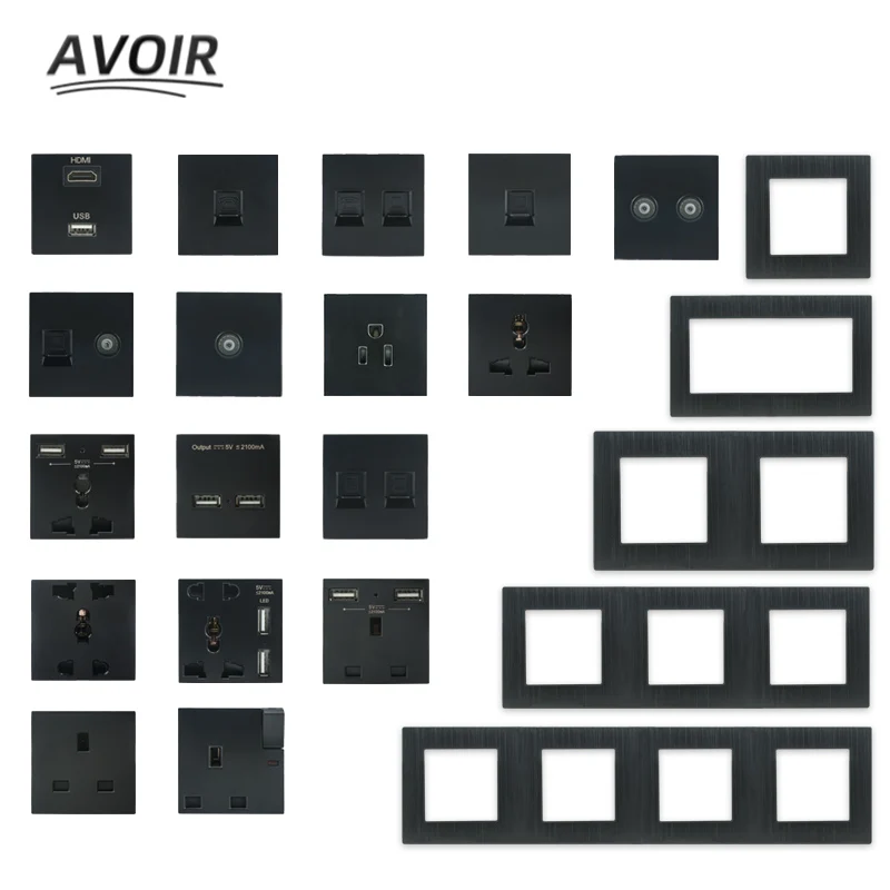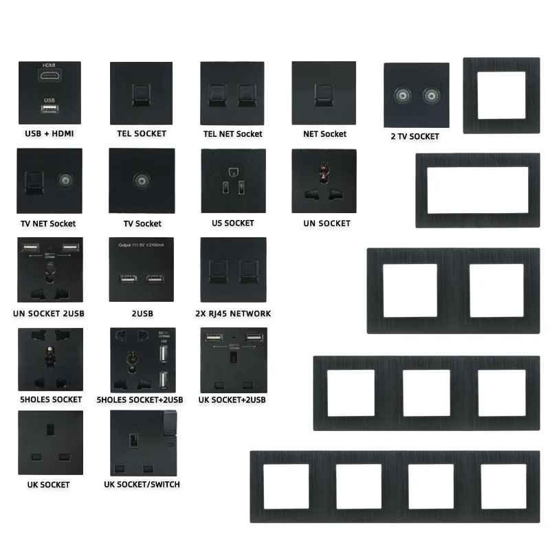 Черная модульная Usb настенная электрическая розетка, разъем питания RJ45, функциональная клавиша для телевизора, сделай сам, Бесплатная комбинация, Алюминиевая Матовая рамка розетка с usb розетки электрические заглу