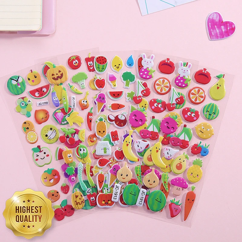 Наклейки Bubble Puffy с мультяшными животными, фруктами, сделай сам...