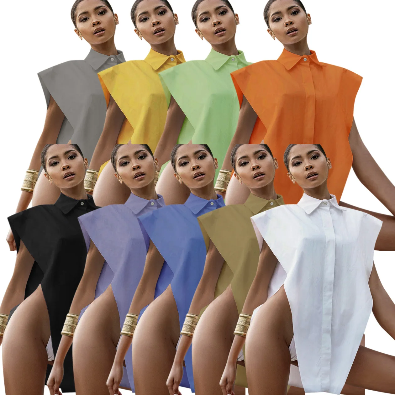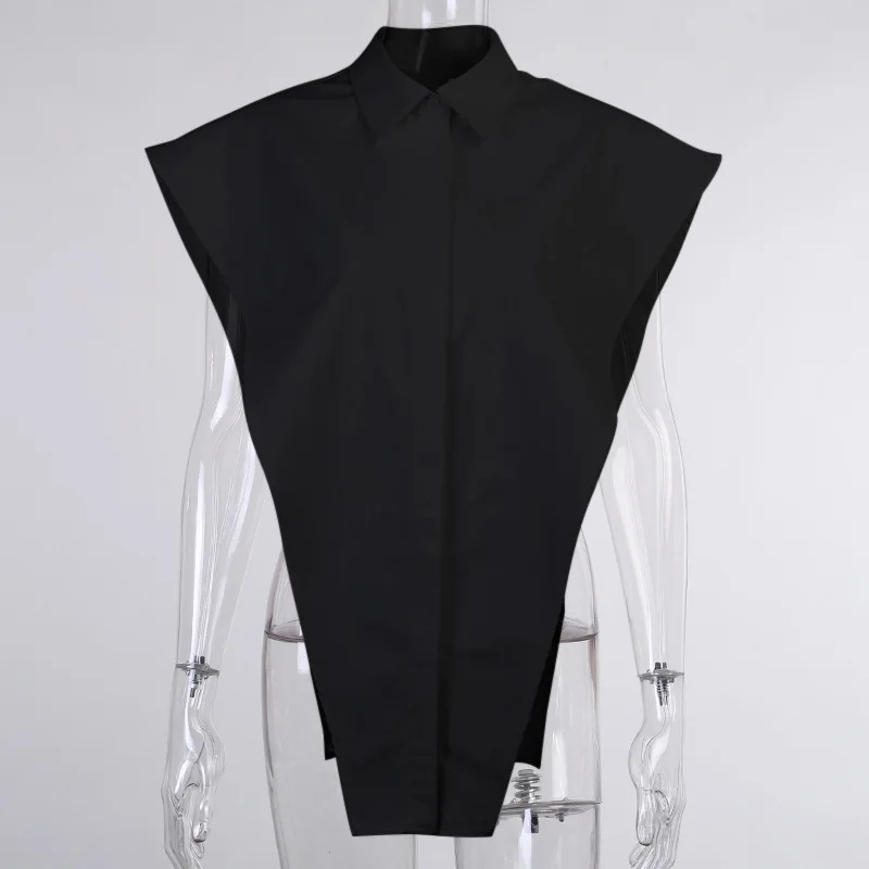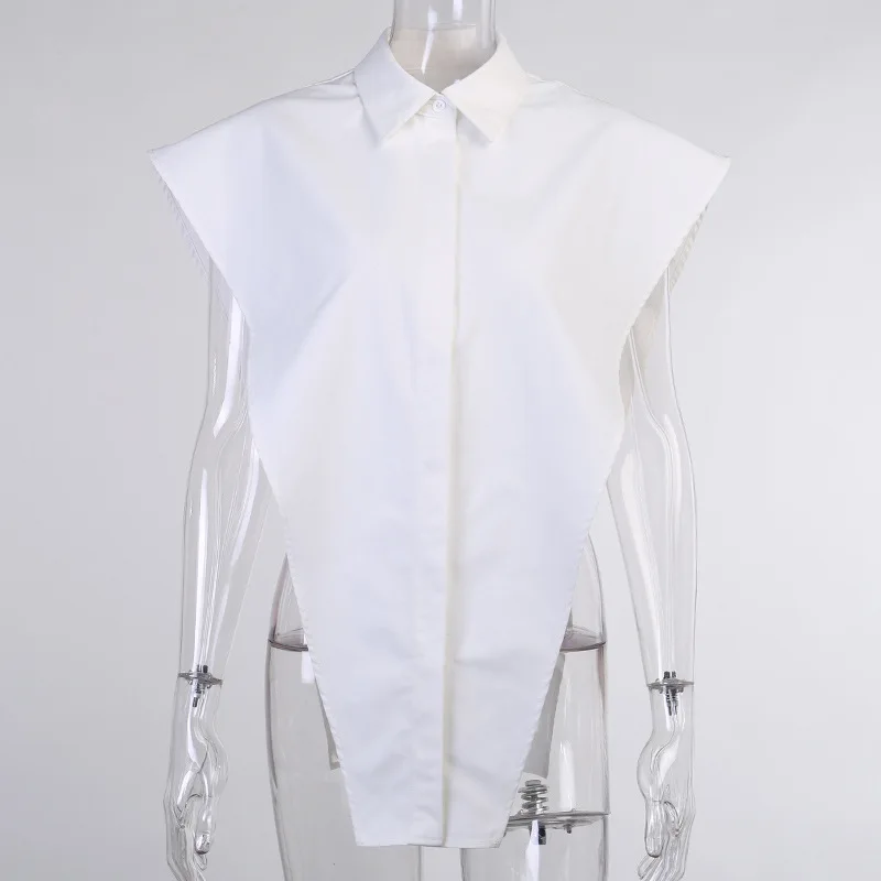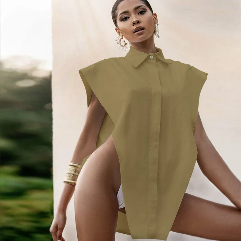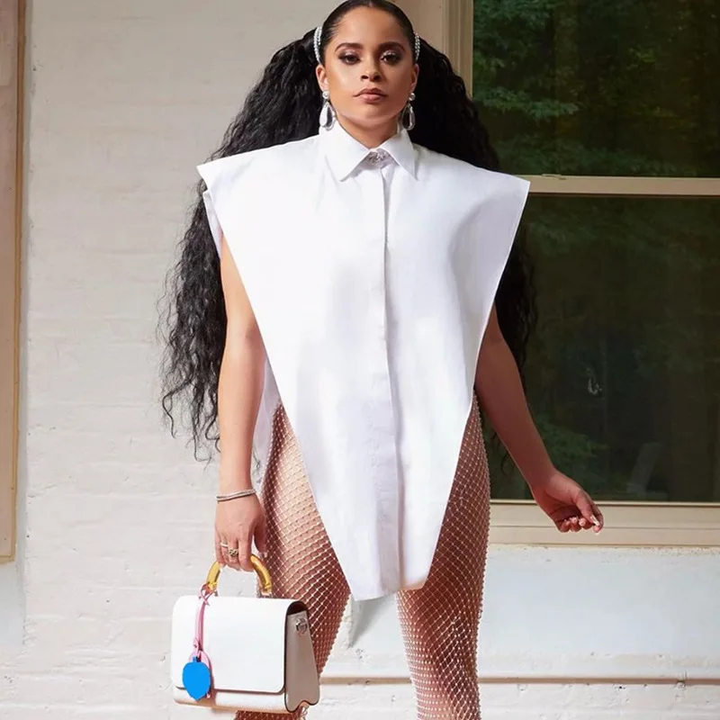 Женская рубашка без рукавов, белая блузка оверсайз с разрезами и боковыми пуговицами, лето 2021