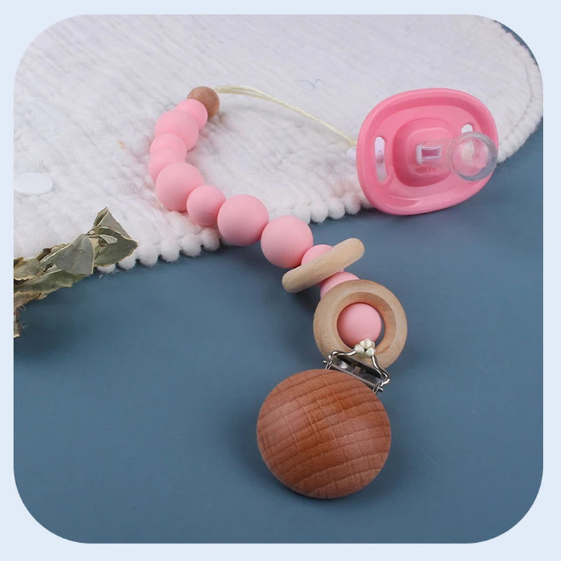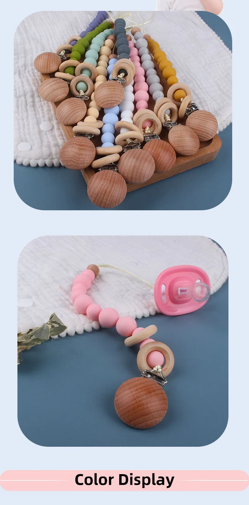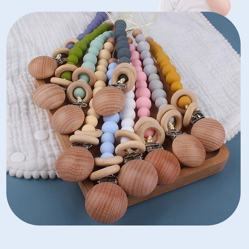 Бусины из пищевого силикона, зажимы для детской соски, деревянное кольцо, зажим-пустышка, зажим для цепочки для младенцев, облегчающая боль