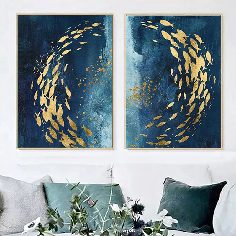 Современная абстракция синяя холст картины Nordic Плакаты и принты ...