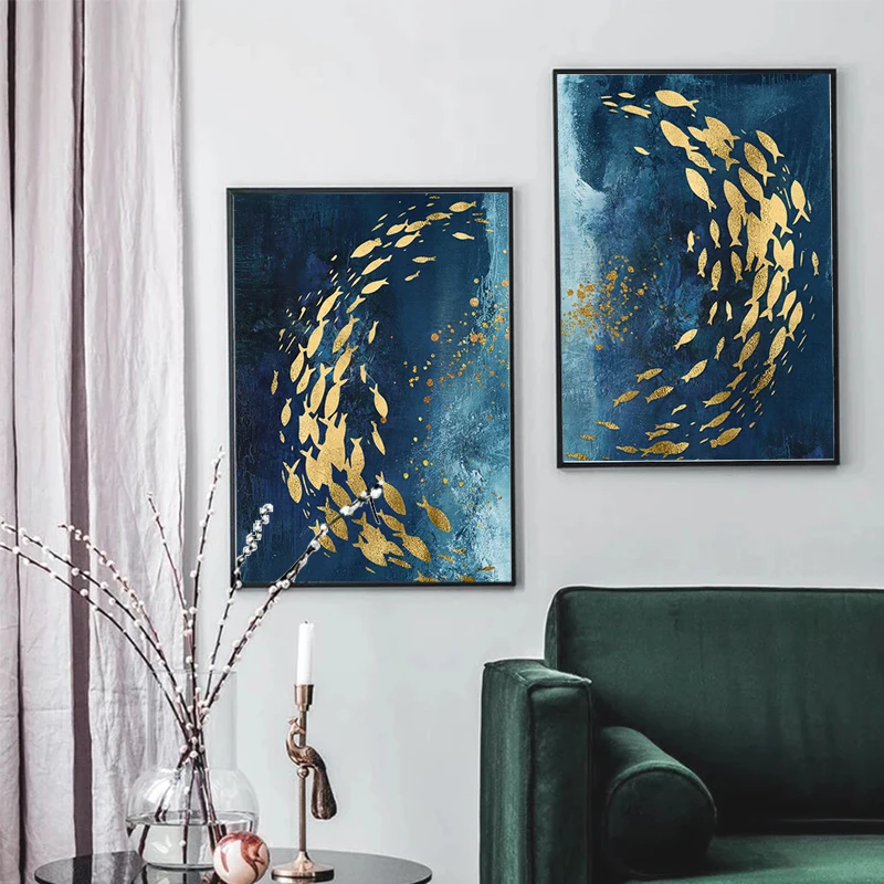 Скандинавская абстрактная промышленная живопись на холсте, золотые ...