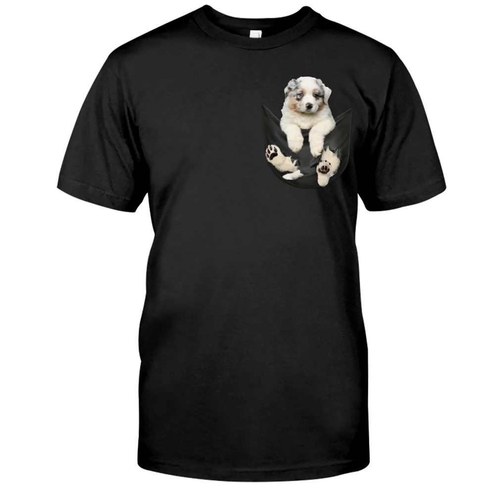 Хлопковая футболка CLOOCL, модная футболка с принтом австралийской овчарки в кармане, повседневные топы в стиле Харадзюку, хлопковые черные футболки, Прямая поставка