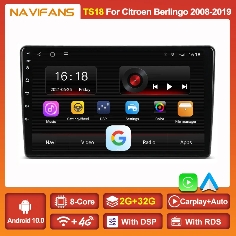 Автомагнитола Carplay 6-128G Android 11 для Citroen Berlingo 2 B9 2008 2009 2010 2011 2012 2019 мультимедийный Видео Стерео GPS 2din DVD
