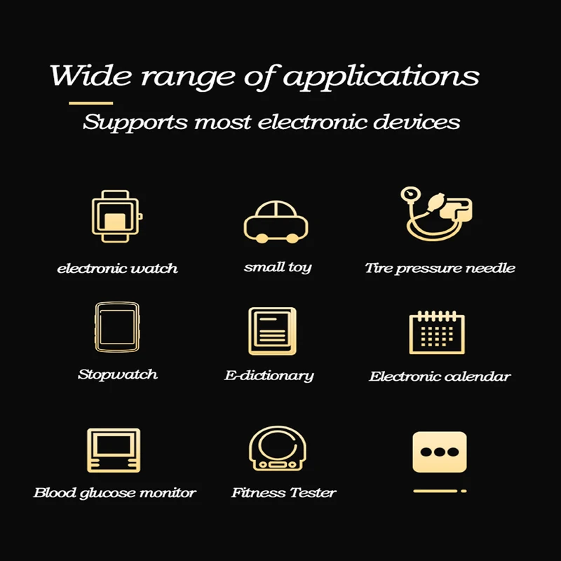 Application:Watches, Cameras, Calculators, Car Security Alarm