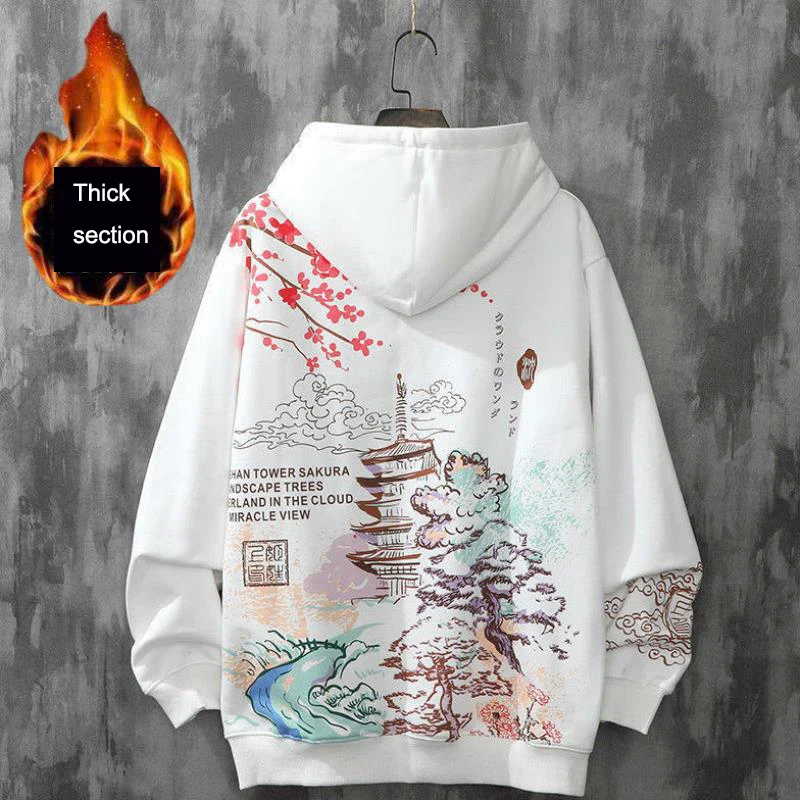 Мужская Флисовая Толстовка в стиле Харадзюку, худи в японском стиле...