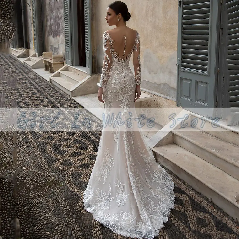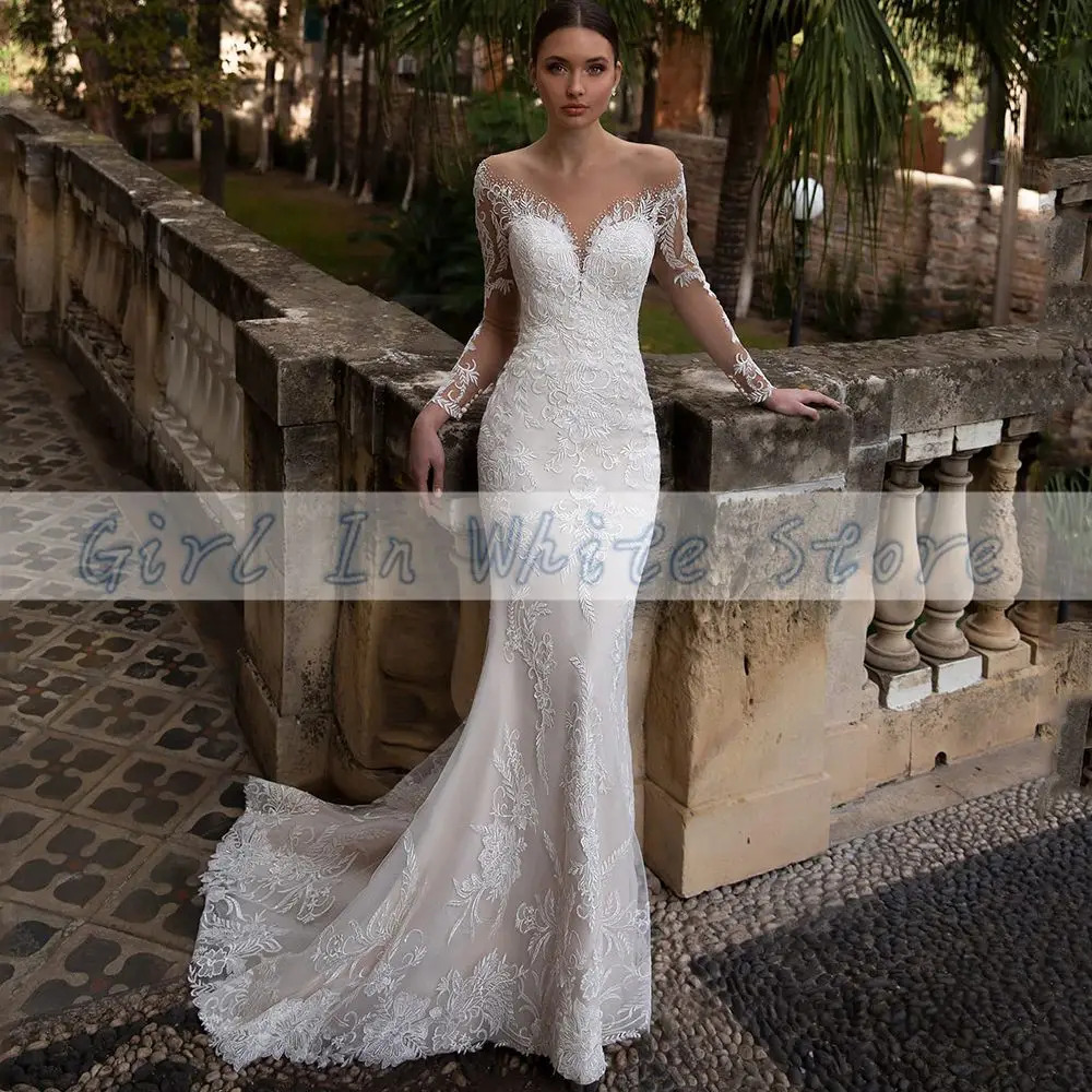 Свадебное платье-Русалка со шлейфом, со шлейфом и длинными рукавами