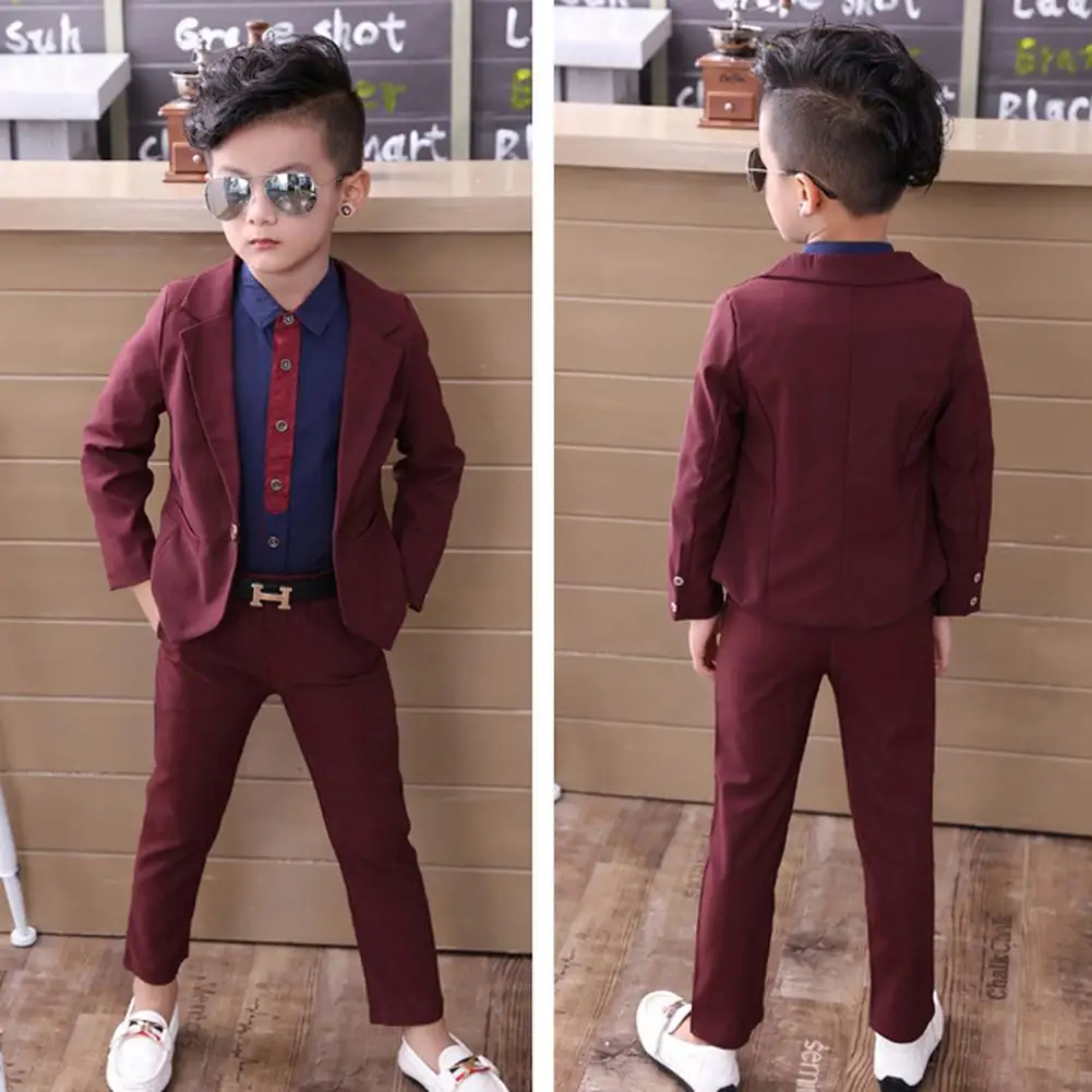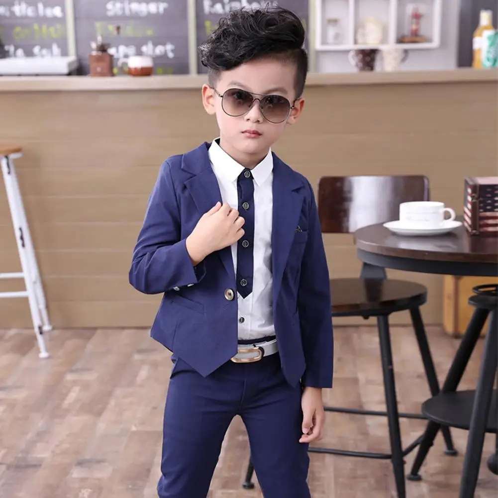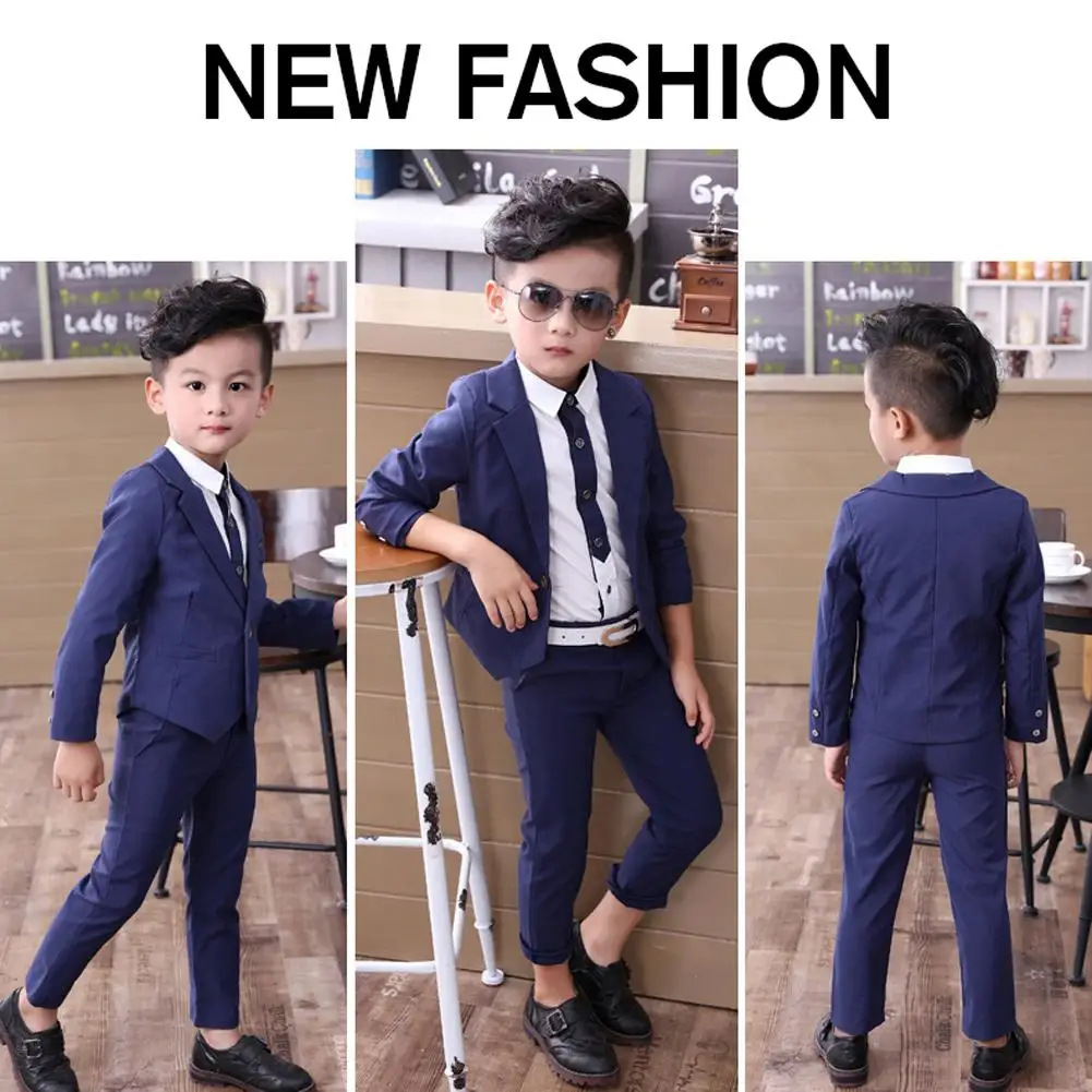 Детский костюм-смокинг для мальчиков, официальная одежда на день рождения, комплект одежды для свадебной вечеринки, рубашка с пуговицами, блейзер и брюки, приблизительно на 3-9 лет