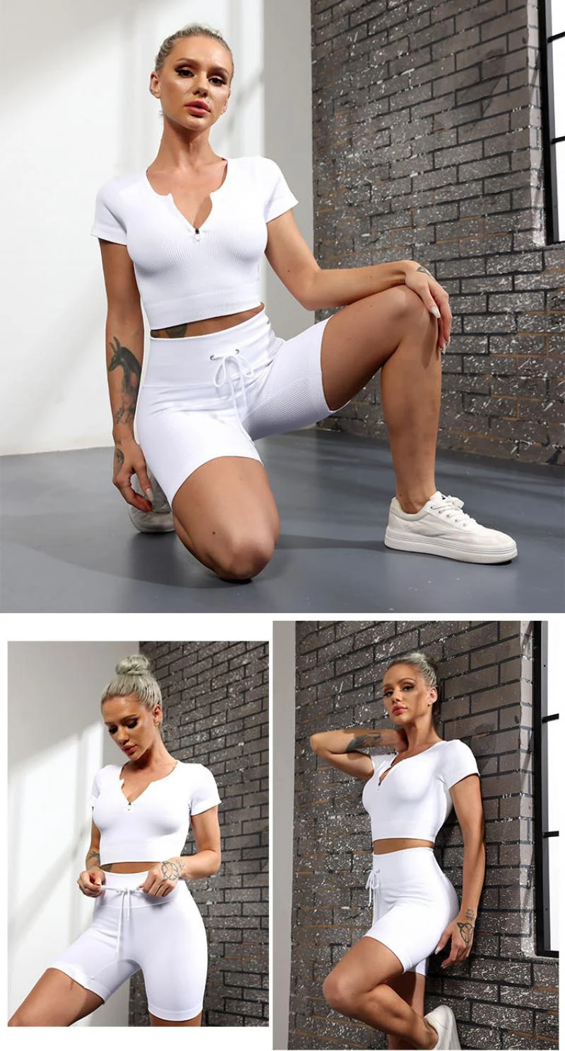 Сексуальный бесшовный Женский комплект для йоги, шорты с коротким р...
