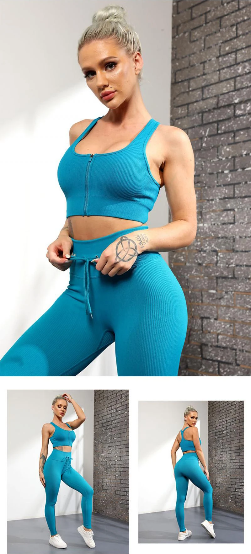 Новинка, бесшовный Женский комплект для йоги на молнии, спортивная ...
