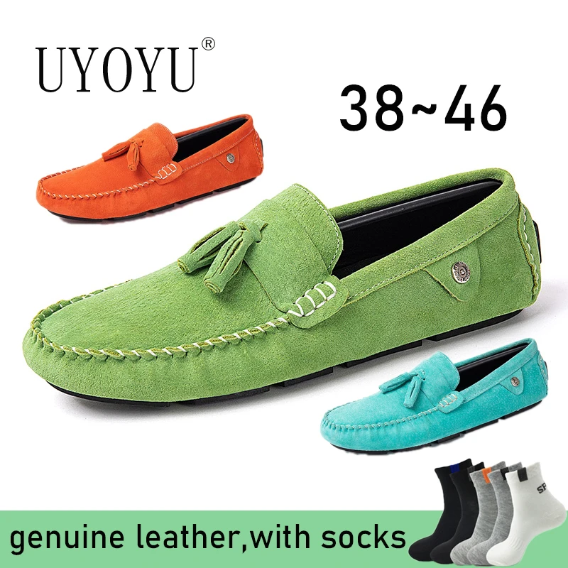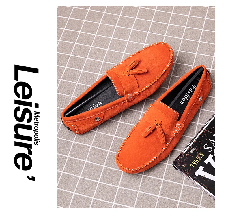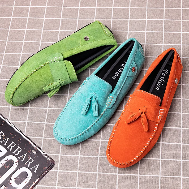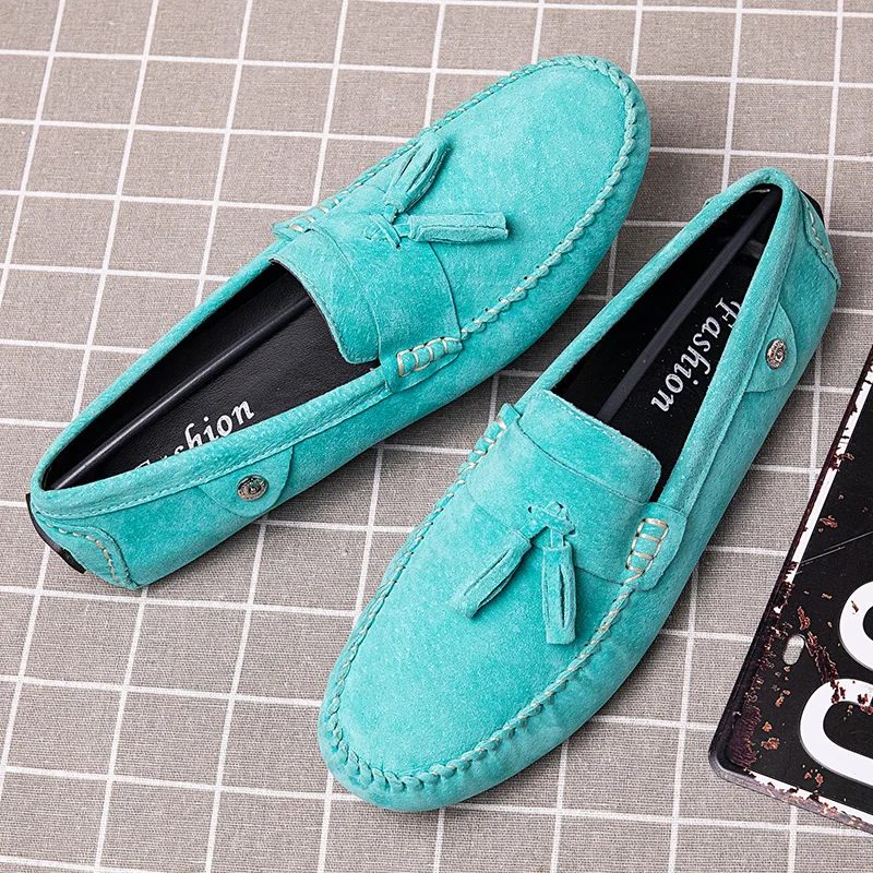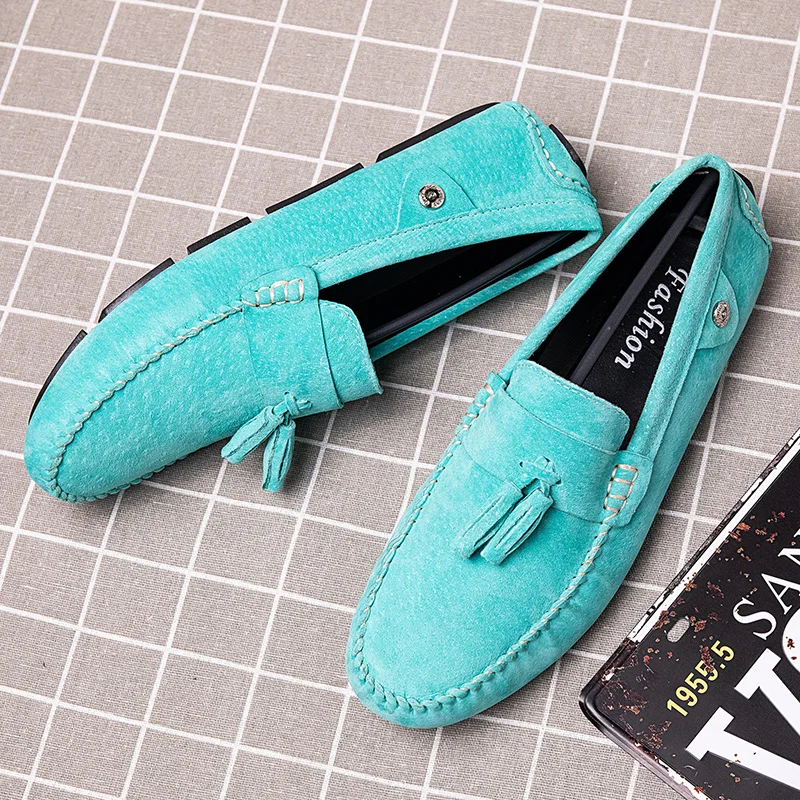 Мокасины из натуральной замши для мужчин и женщин, туфли на плоской...