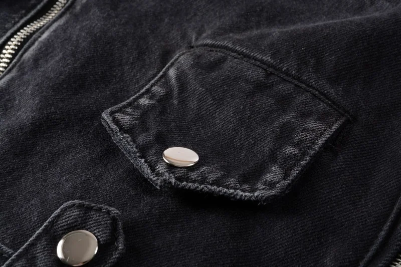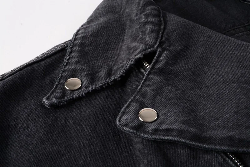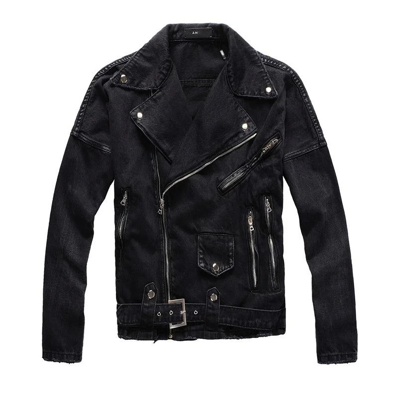 Модная Черная байкерская джинсовая куртка в стиле панк, Мужская джинсовая куртка, уличная одежда большого размера, однотонная джинсовая куртка на молнии для мужчин