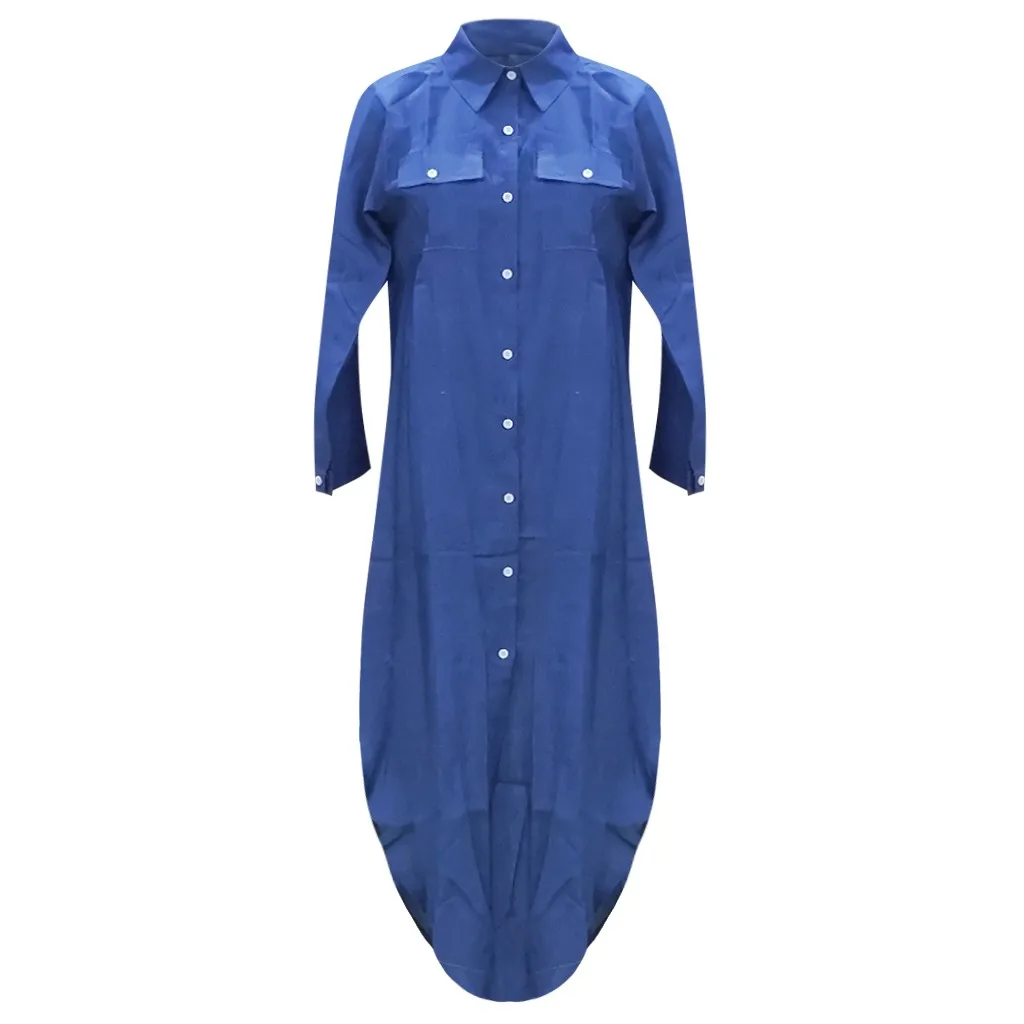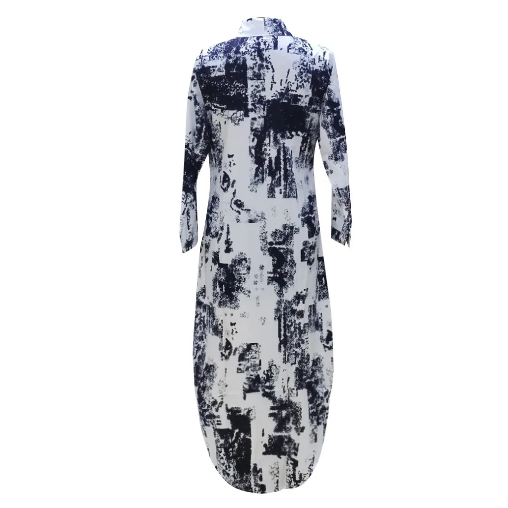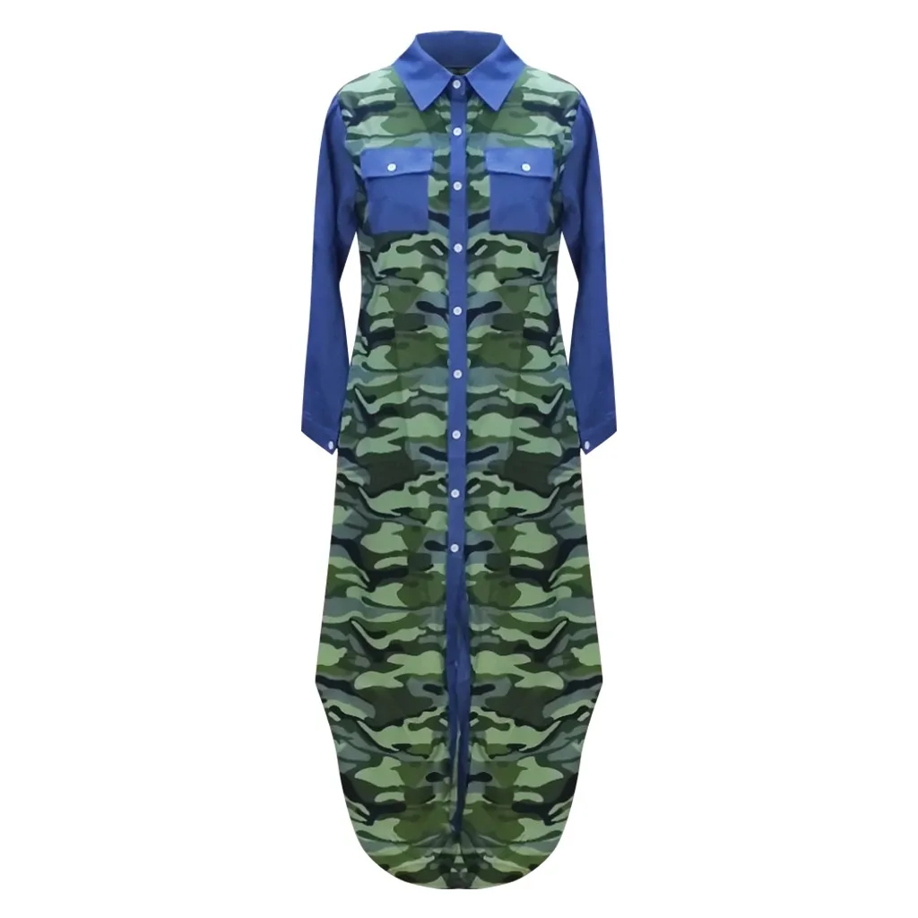 Женская одежда, женское платье, модная свободная сексуальная женская одежда 2020, платье-рубашка с длинным рукавом и принтом на пуговицах, свободное женское платье с карманами
