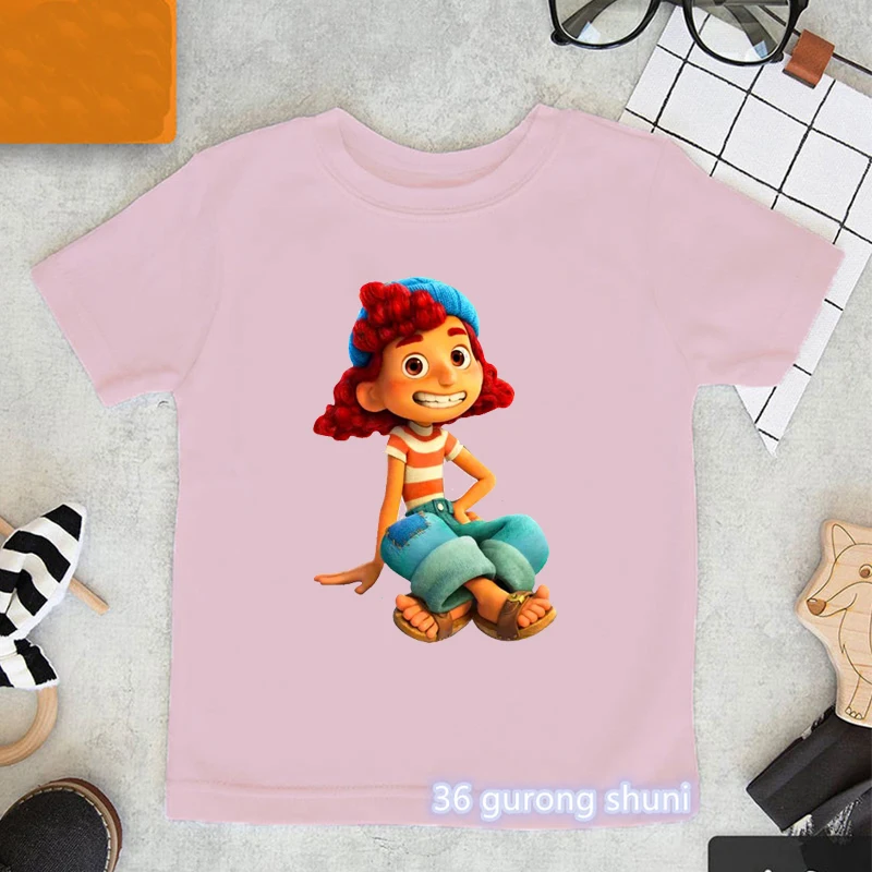 Kawaii футболки для девочек смешной аниме мультфильм лука графический принт Одежда для девочек летняя футболка Харадзюку Детские футболки розовые Топы