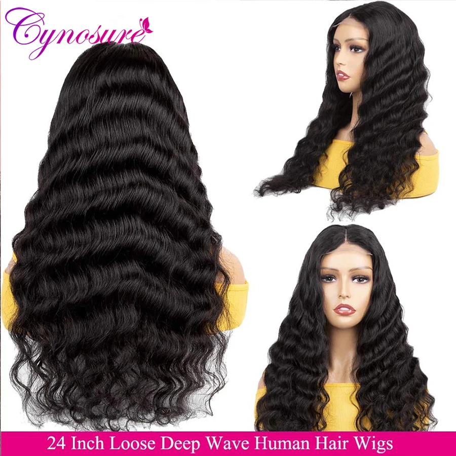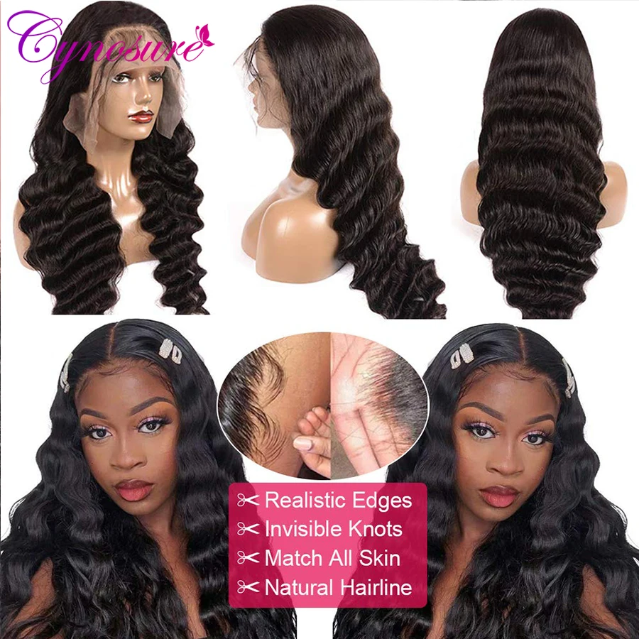 Парики Cynosure HD из прозрачных человеческих волос на сетке спереди для женщин, бразильские волосы с предварительным выщипыванием, 13X4, свободные, глубокие волны, на сетке спереди, парик без повреждений
