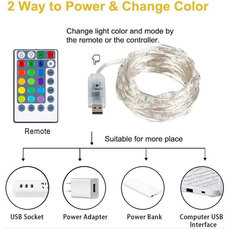 На пульте дистанционного управления используется 1xCR 2025 кнопочный аккумулятор (Батарея в комплект не входит) Продукт: USB цветная RGB медная проволочная лампа
