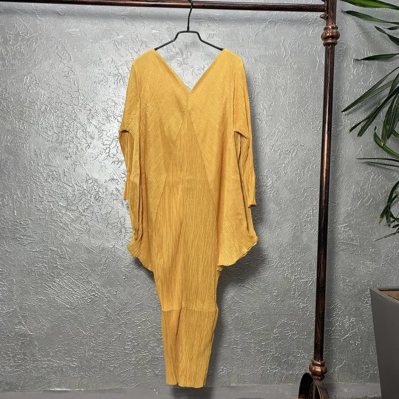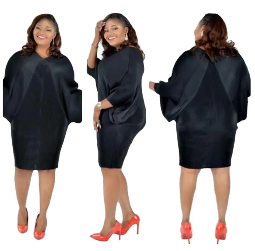 Платье женское летнее ДРАПИРОВАННОЕ с V-образным вырезом и рукавом летучая мышь