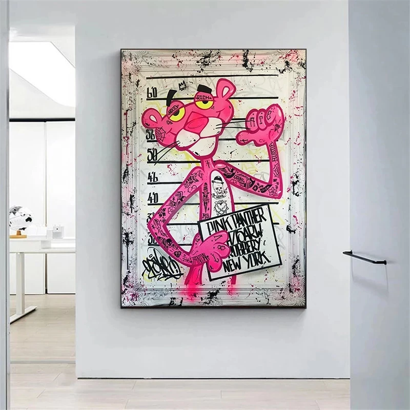 Современная искусственная Розовая пантера постер поп-арт граффити н...