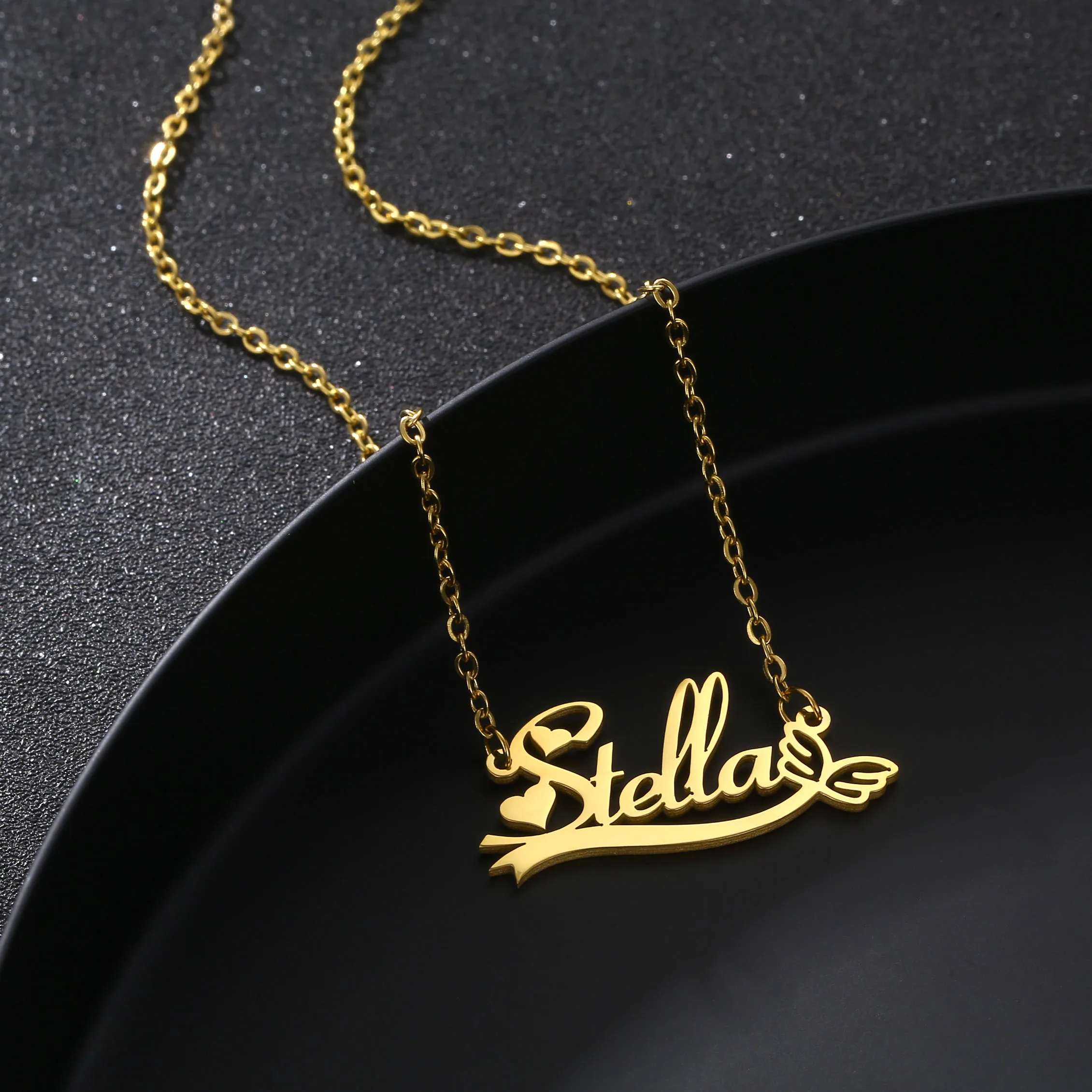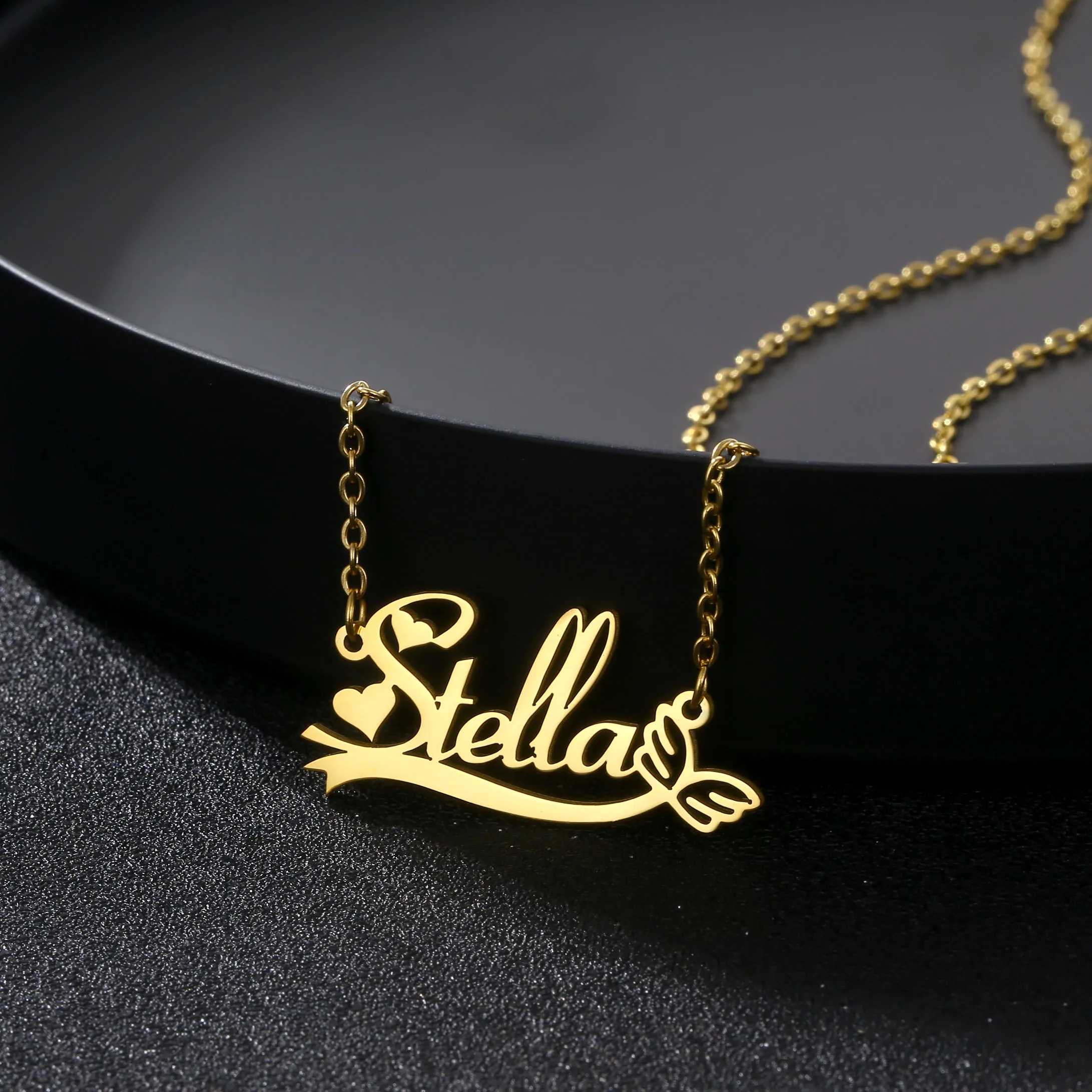 Ожерелье с именем на заказ из нержавеющей стали с золотым наполнением
