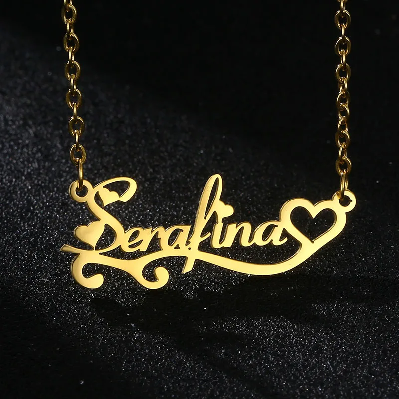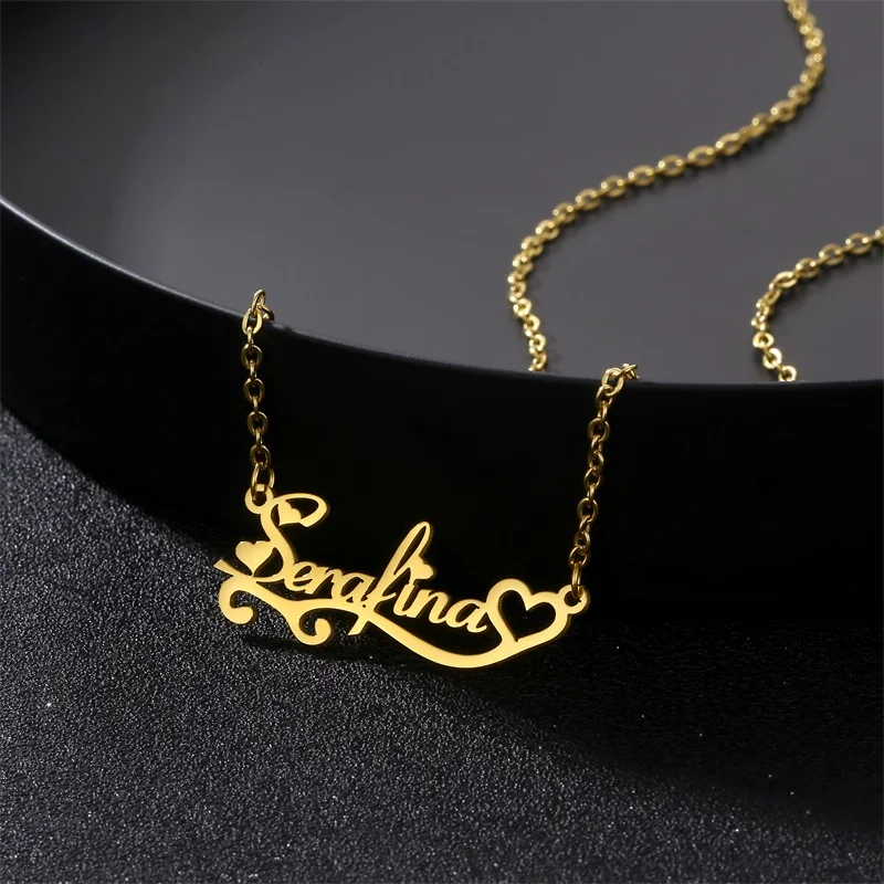 Ожерелье с именем из нержавеющей стали, колье с буквами и сердцем, ...