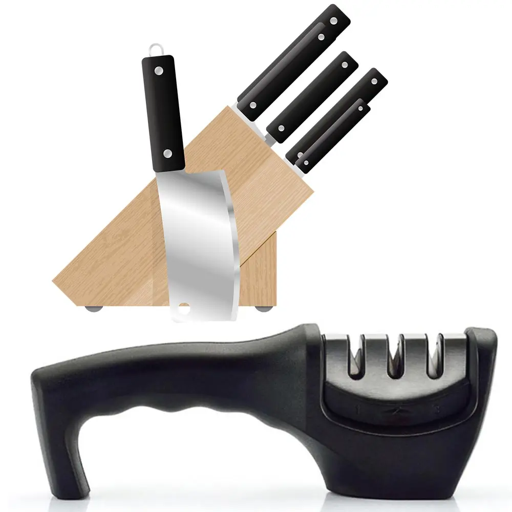 Точилка для ножей, 3 этапа, профессиональный точильный камень, кухонный точильный камень, вольфрам, алмазное сверло, шлифовальный станок, Дамаск, инструмент шеф-повара