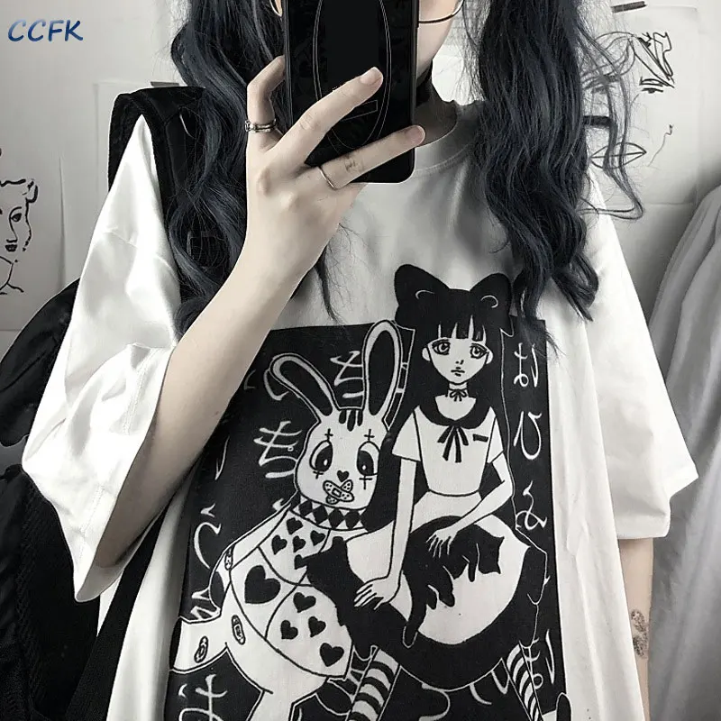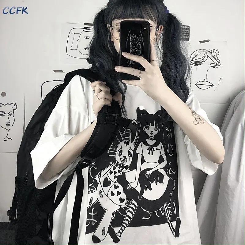 Женская футболка с коротким рукавом, круглым вырезом и мультипликационным принтом