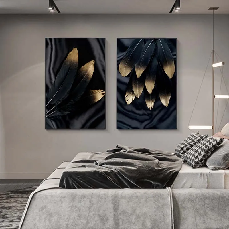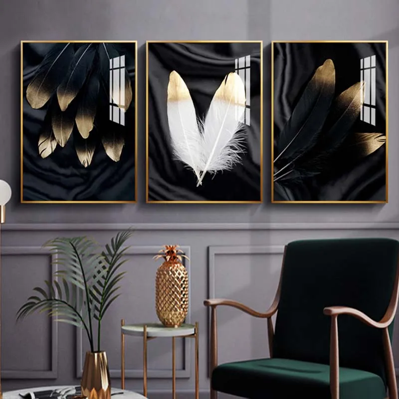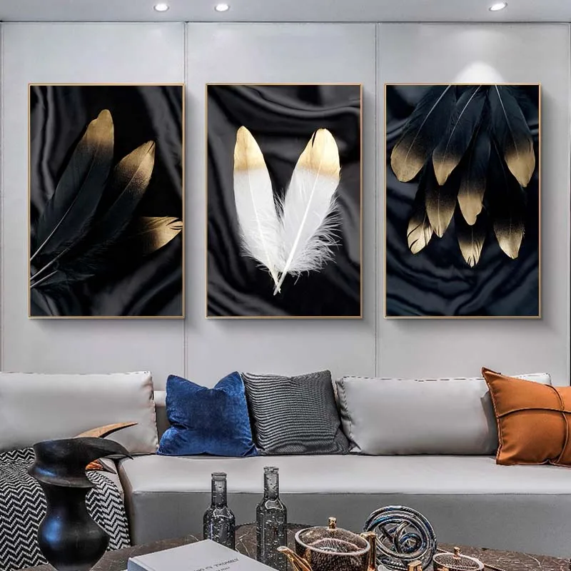 Картина на холсте, черно-белые перья, Постер в скандинавском стиле, картина для украшения гостиной