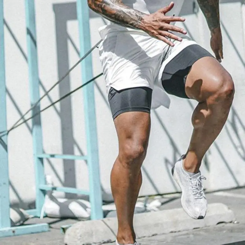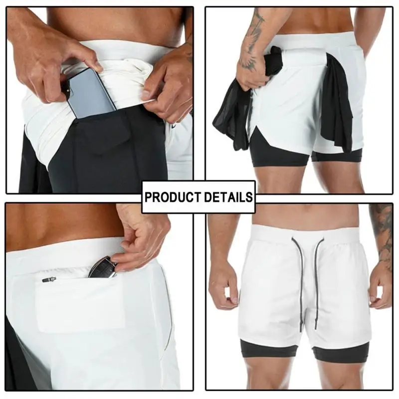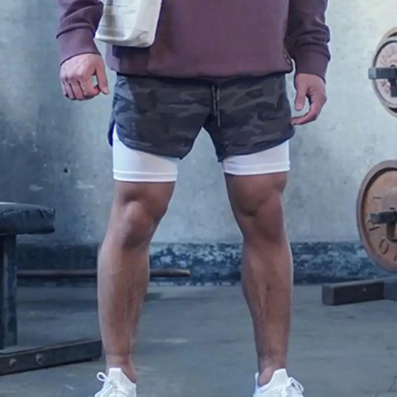Шорты мужские спортивные 2 в 1, быстросохнущие, для бега, тренажерного зала, 2 в 1