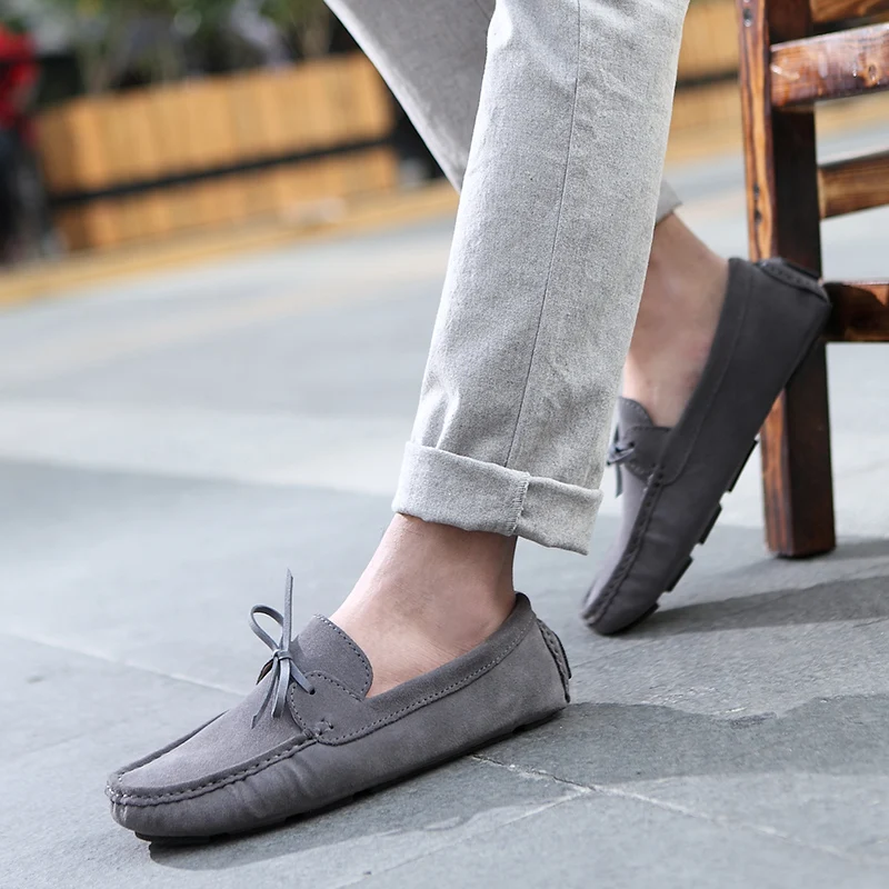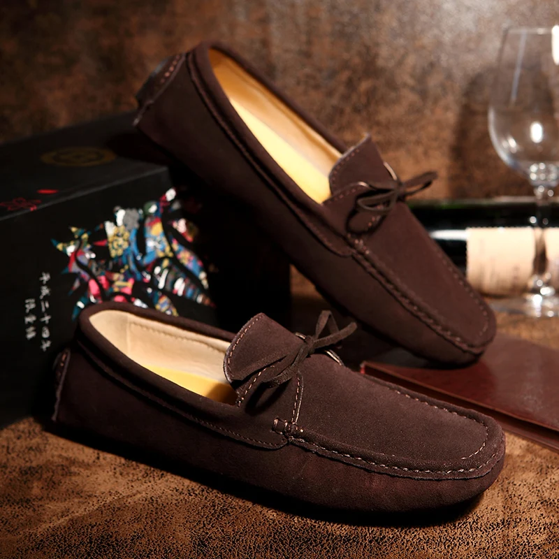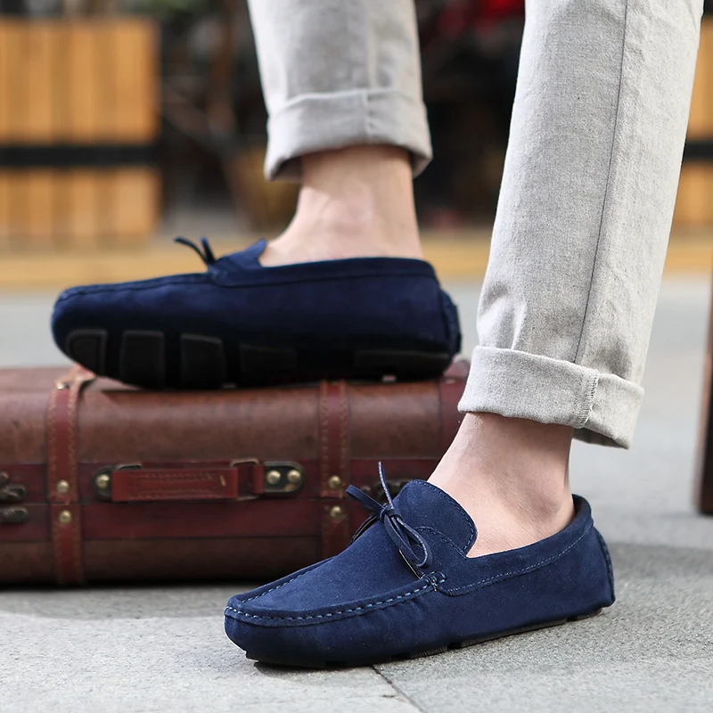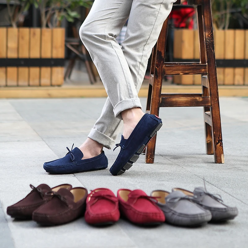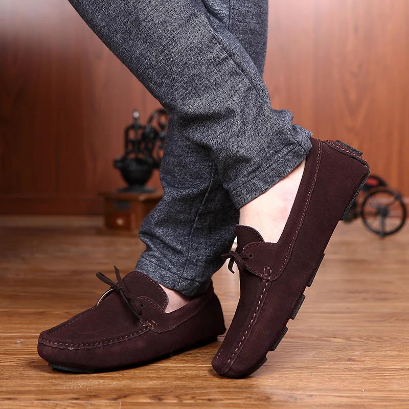 Мокасины из натуральной замши для мужчин и женщин, туфли на плоской...