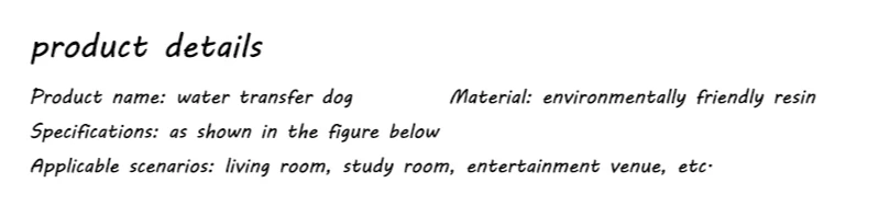 Ниже приводится подробная информация о продуктеНазвание продукта: переводная собака/окрашенная собакаРазмер: как показаноЦвет: граффитиМатериал: Экологически чистая смолаПрименение сценария: гостиная, спальня, офис, кофейня, кабинет и т. Д.Стиль: стиль граффитиУпаковка: пенная коробка + пузырчатая колонна + сумка