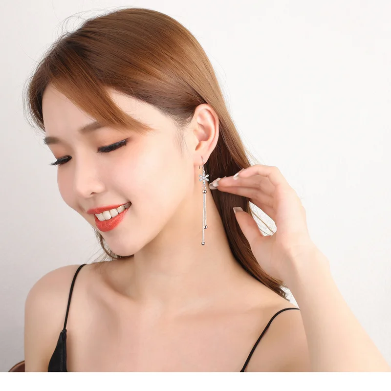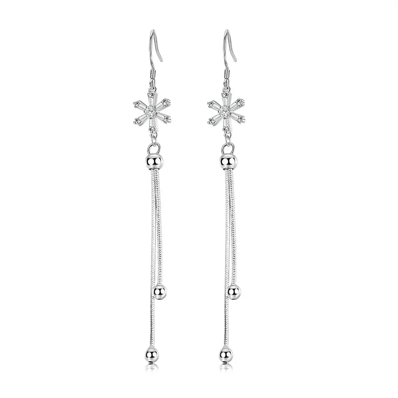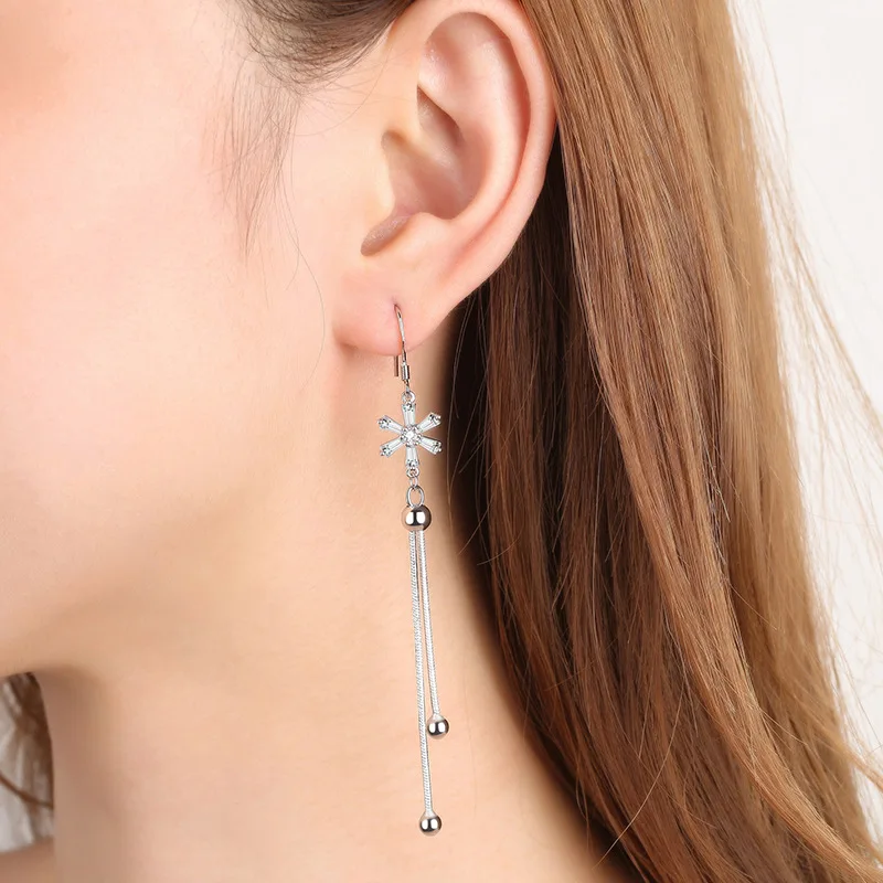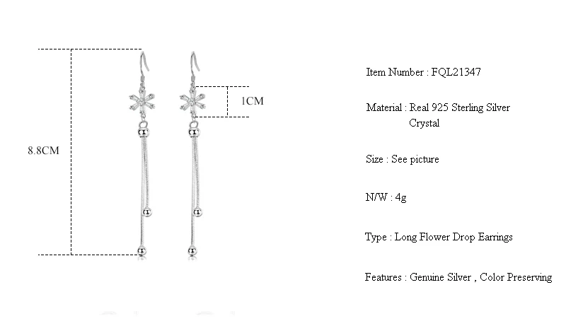 Женские длинные серьги-подвески Fanqieliu, Винтажные серьги в виде цветка с кристаллами, модель FQL21347, 925