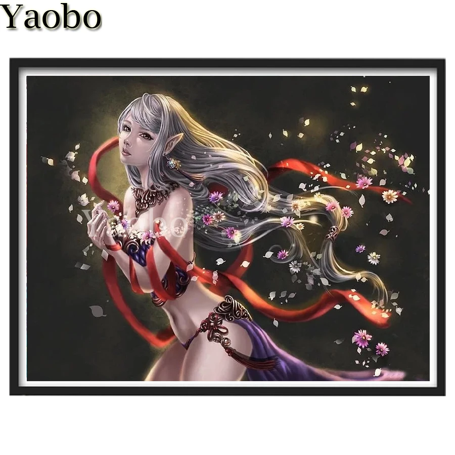 Полный квадратный круглый 5D алмазная картина аниме эльф цветок Алмазная вышивка мозаика Стразы Алмазная Вышивка крестом 5D искусство