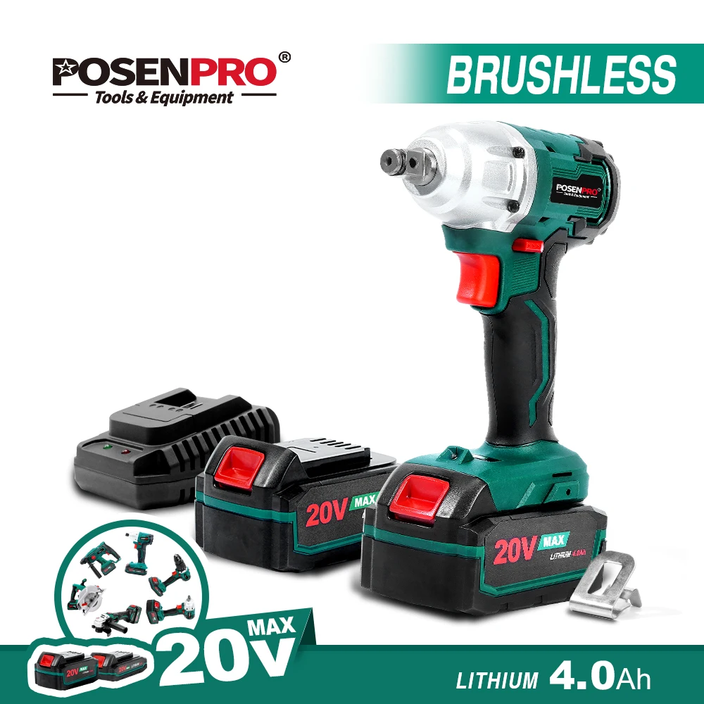 POSENPRO бесщеточный беспроводной ударный гайковерт 20 в электрический гайковерт светодиодный светильник 2 скоростной режим