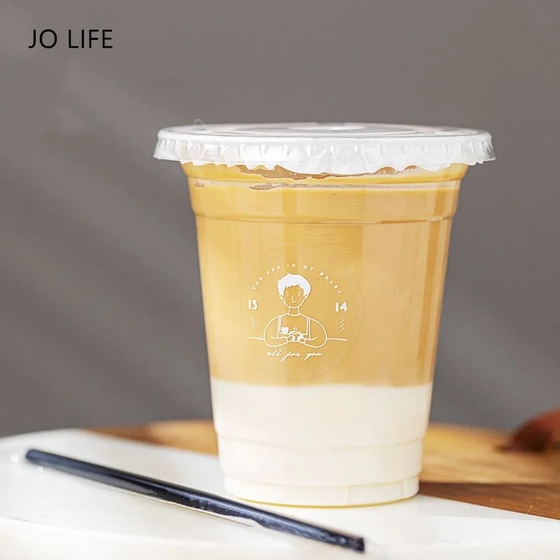 JO LIFE одноразовые, для молока, 50 шт., чашки для чая пластиковая прозрачная чашка с крышкой, кофе, напитков, сока, на вынос пакет для напитков