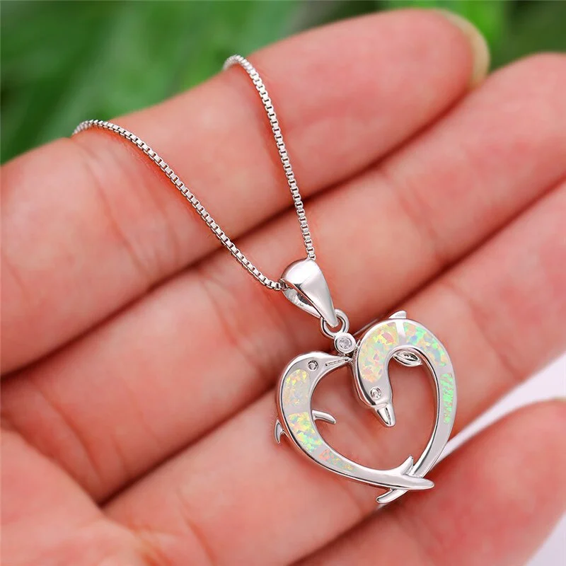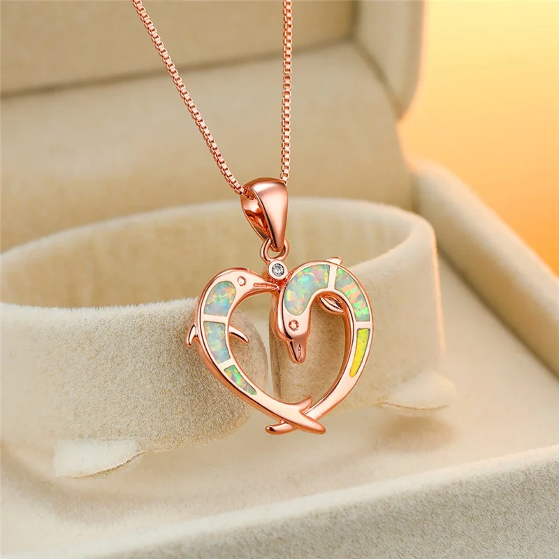Модный белый дельфин сердце женский кулон розовое золото свадебное ожерелье подарок для влюбленных винтажные аксессуары