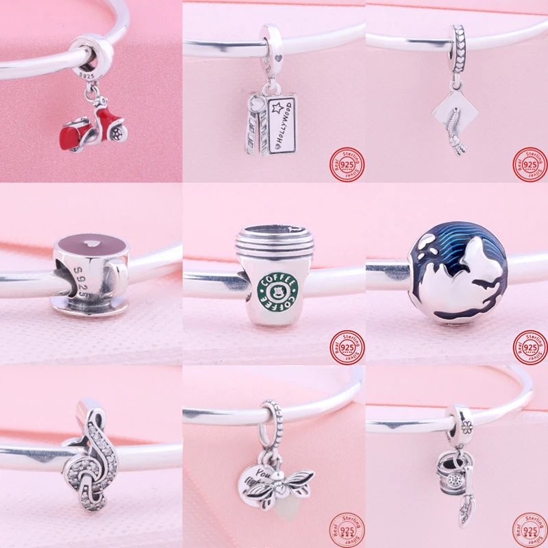 2021 чемодан, Бабочка, велосипед, кофейная чашка, серебряные бусины 925, подходят для оригинального браслета Pandora с шармами, сделай сам, женское и женское ювелирное изделие, подарок